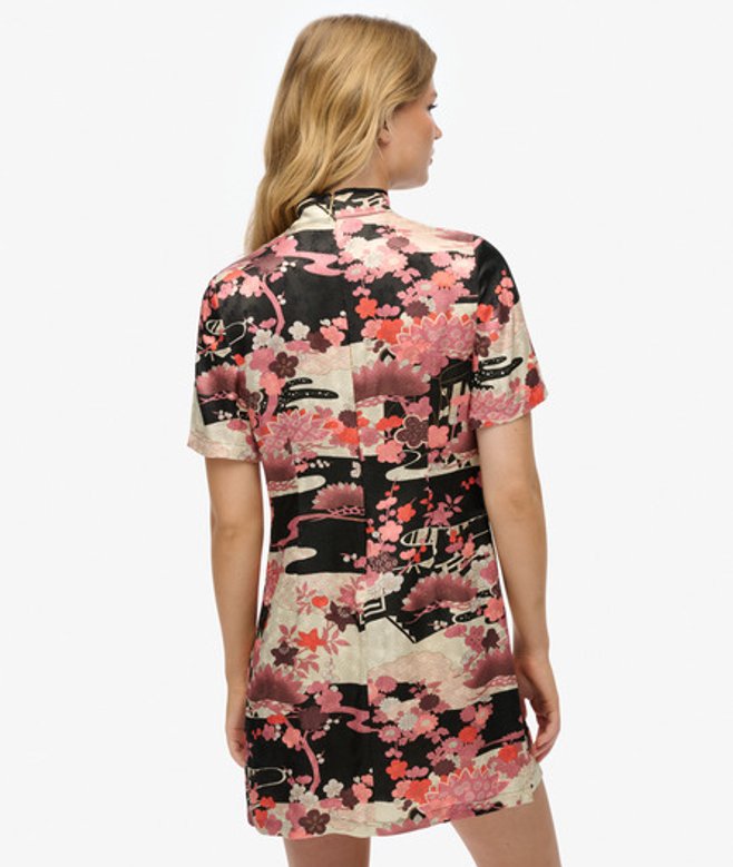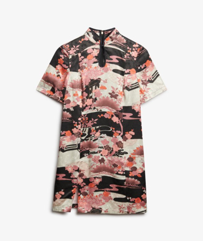 Superdry Mini-jurk van Jacquard met Mandarijnkraag Pink