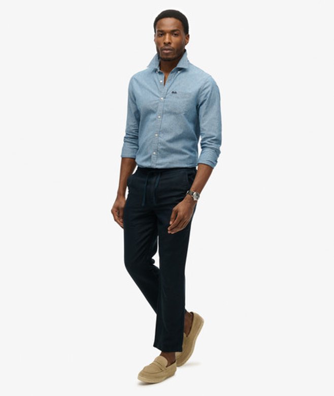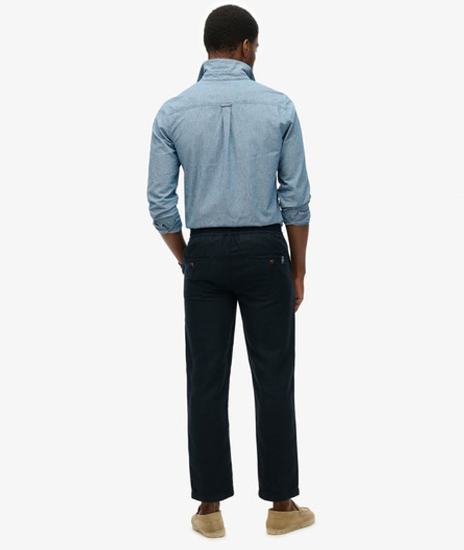 Elastische taille met een verstelbaar trekkoord Knoop- en ritssluiting en vier buitenzakken Geweven linnen stof en middelhoge taille Kenmerkend label achter op de tailleband Deze linnen broek uit de Merchant Store-collectie is een zomerse essential.