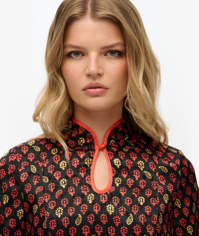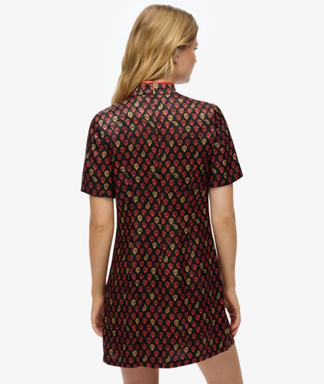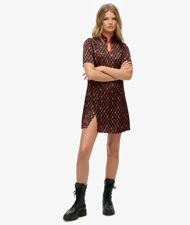 Superdry Mini-jurk van Jacquard met Mandarijnkraag Black