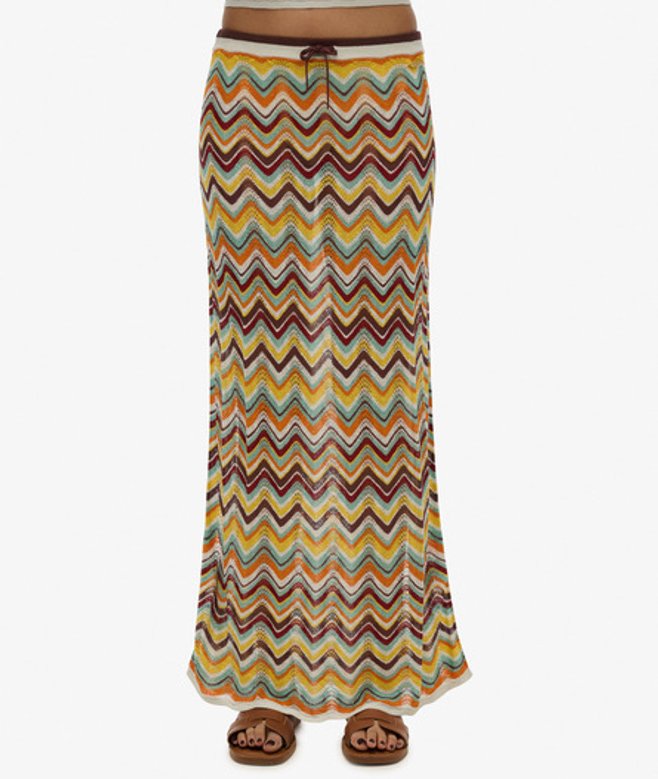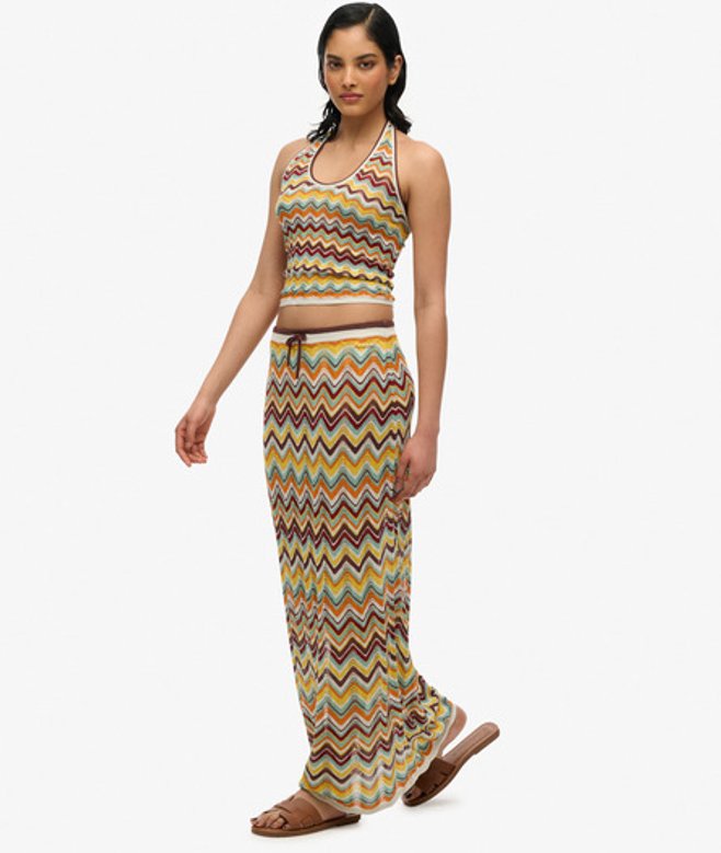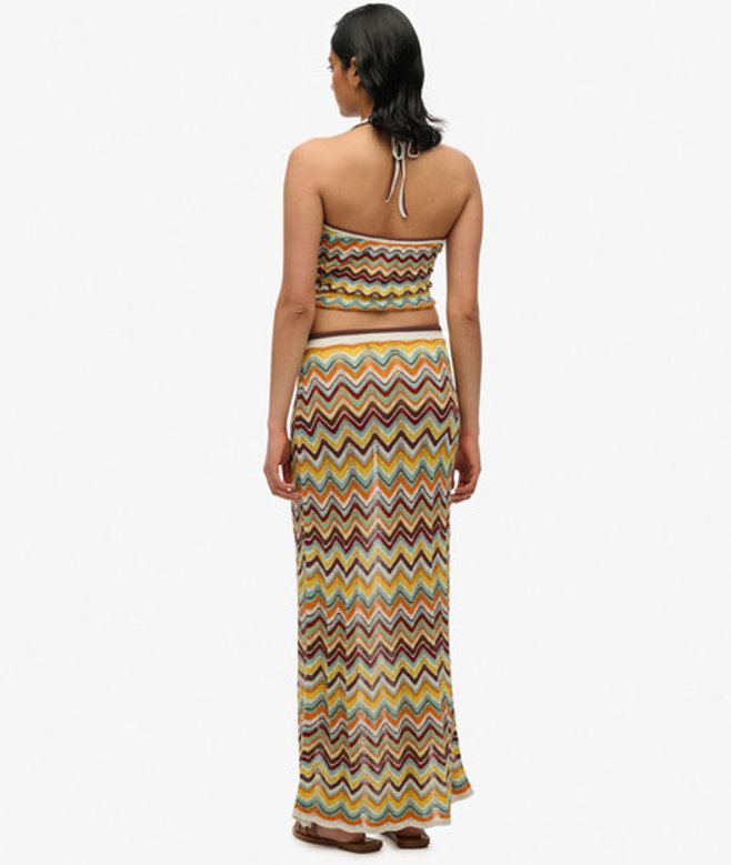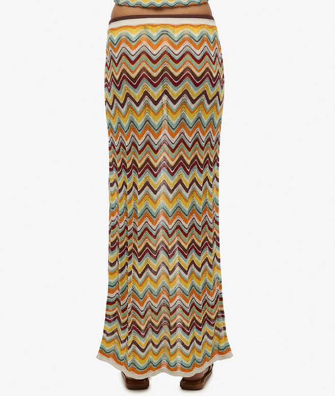 Kies je gebruikelijke maat Elastische tailleband met verstelbaar trekkoord Ongevoerd met gehaakte details en een maxilengte Metalen badge aan de zijkant van de taille en een geschulpte zoom UK10 Lengte: 9 1 cm De gebreide maxikokerrok met zigzagpatroon is vakkundig gemaakt om jou de aandacht te laten trekken.