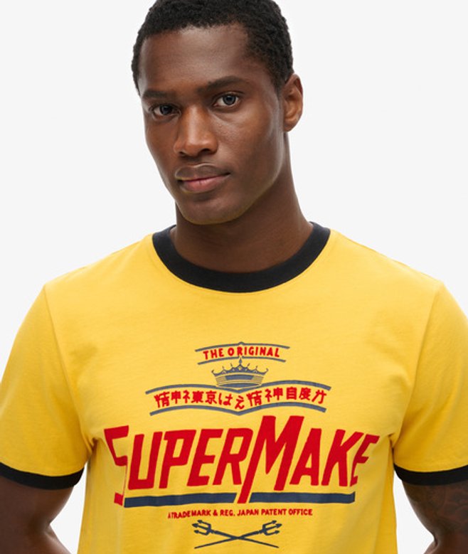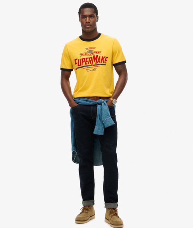 Kies je gebruikelijke maat Korte mouwen en een ronde hals voor een klassieke T-vorm Ringer-ontwerp met contrasterende halslijn en manchetten Gebarsten afwerking van de afbeelding Het Modern Industry relaxed T-shirt is een moeiteloze manier om een rustieke, maar toch moderne charme aan je casual garderobe toe te voegen.