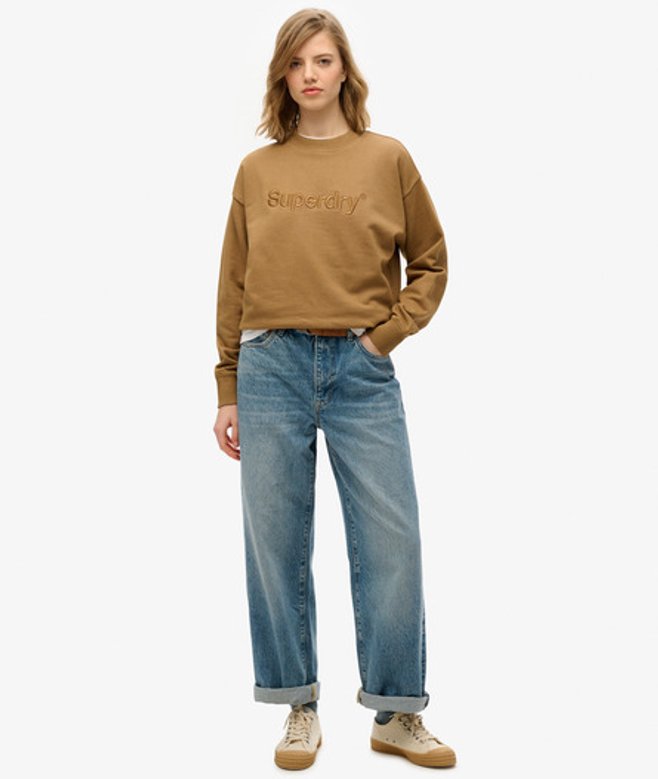 Superdry Core Logo Sweatshirt met Losse Pasvorm Beige