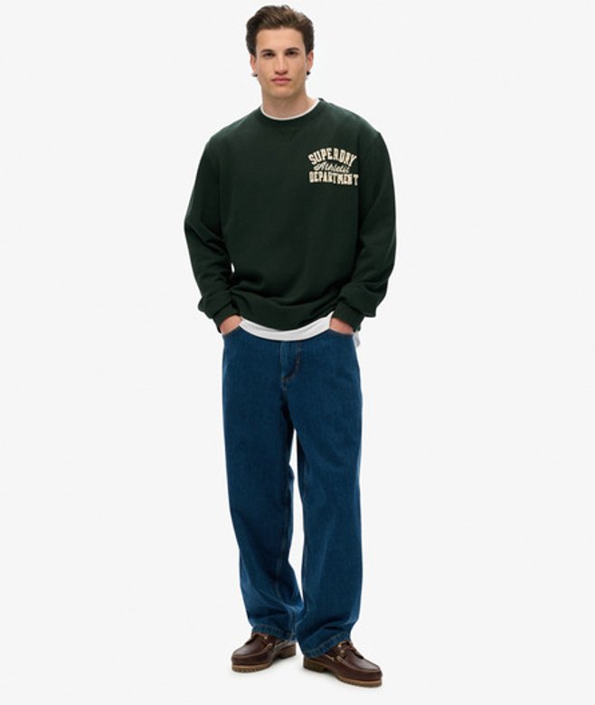 Losse pasvorm - cool en comfortabel komen samen in een stijlvol los ontwerp dat je gewoon moet hebben Ronde hals en geribde manchetten Licht geborstelde voering Geborduurd logo en Superdry-patch Geef elke vrijetijdslook een authentieke, old-school touch met het Vintage Athletic sweatshirt met ronde hals.