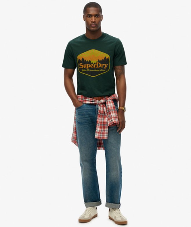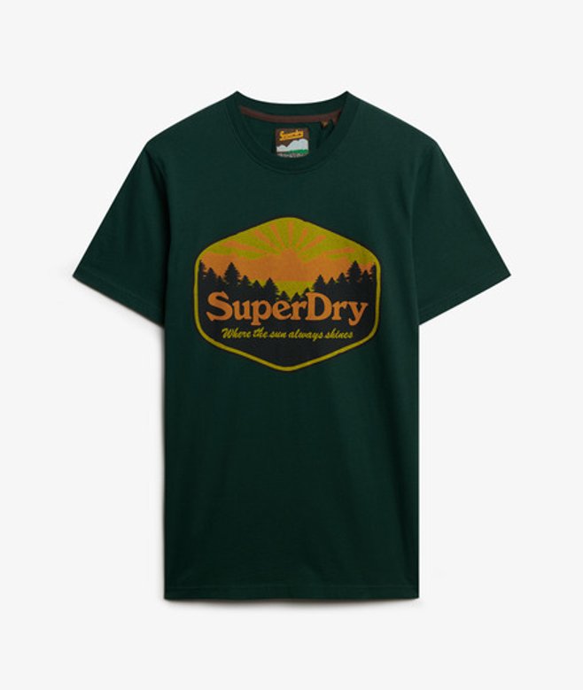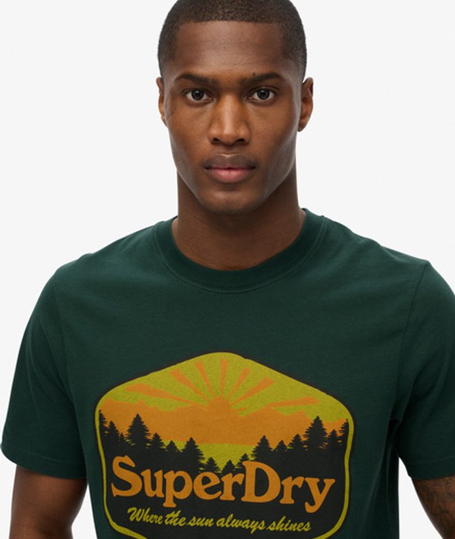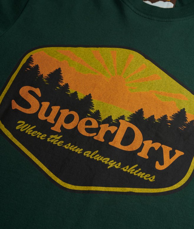 Losse pasvorm, waarbij cool en comfortabel samen zorgen voor een stijlvol en losvallend model dat je gewoon moet hebben Korte mouwen Ronde hals Superdry-afbeelding op de borst Kenmerkend Superdry-label bij de zoom Laat je dit seizoen van je avontuurlijkste kant zien met ons T-shirt met Sun-label.