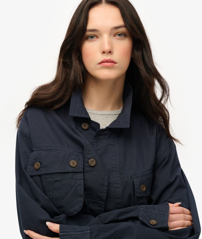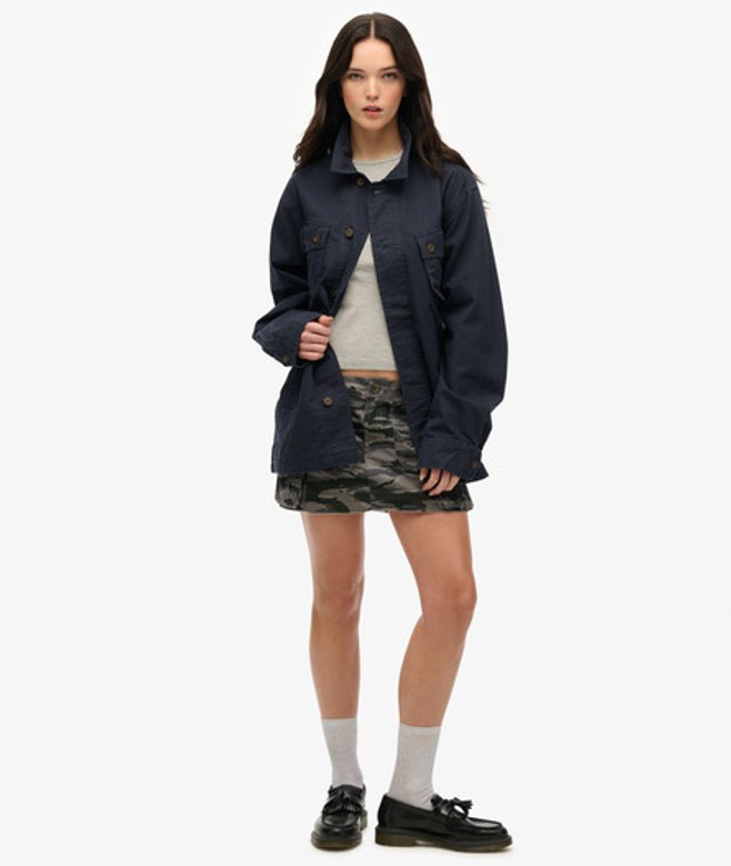 Superdry Oversized Overhemdjack in Militaire Stijl Blauw