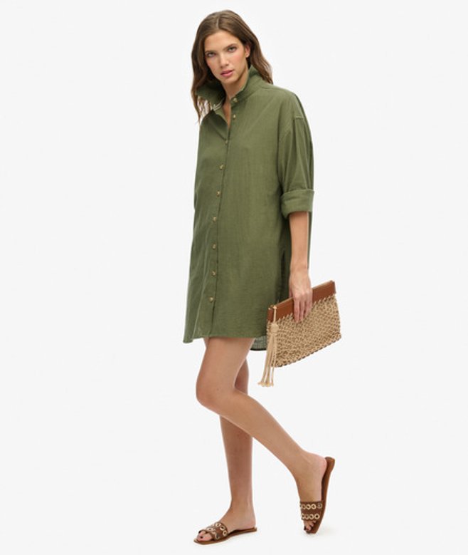 Superdry Lang Ibiza-strandoverhemd Green | ricciano NEDERLAND