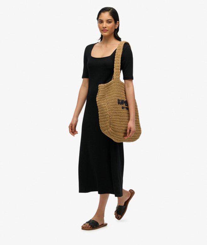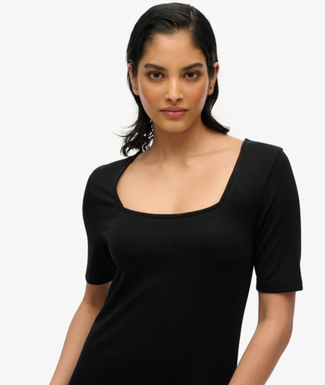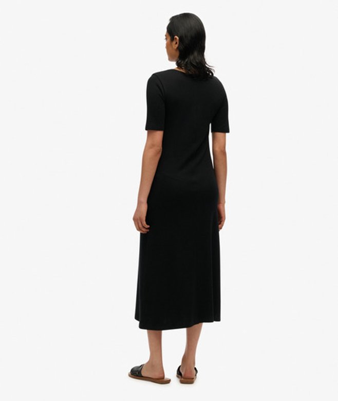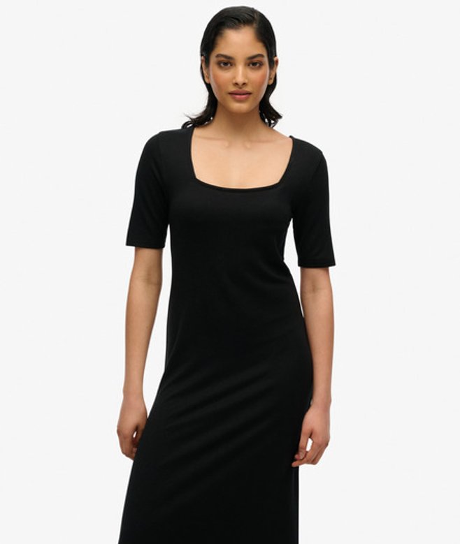 Superdry Jersey Midi-jurk met Korte Mouwen en Vierkante Hals Black