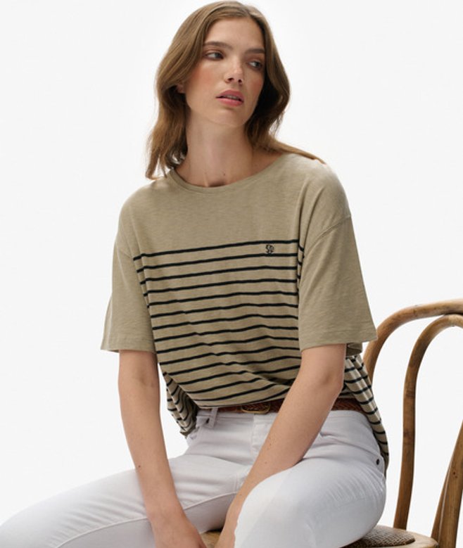 Superdry Studios T-shirt met Verlaagde Schouders Beige