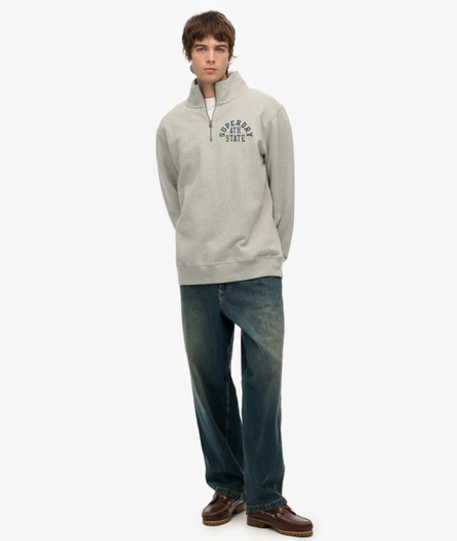Loose fit - waar comfort stijl ontmoet, een trendy losse pasvorm maakt dit een must-have model Ontwerp met halve rits Geribbelde manchetten en zoom Kenmerkend Superdry-label op de linkermanchet Geprint logo op de borst Blijf warm en comfortabel terwijl je de sportieve atletische uitstraling behoudt met onze Athletic Essentials Trui Met Halve Rits.