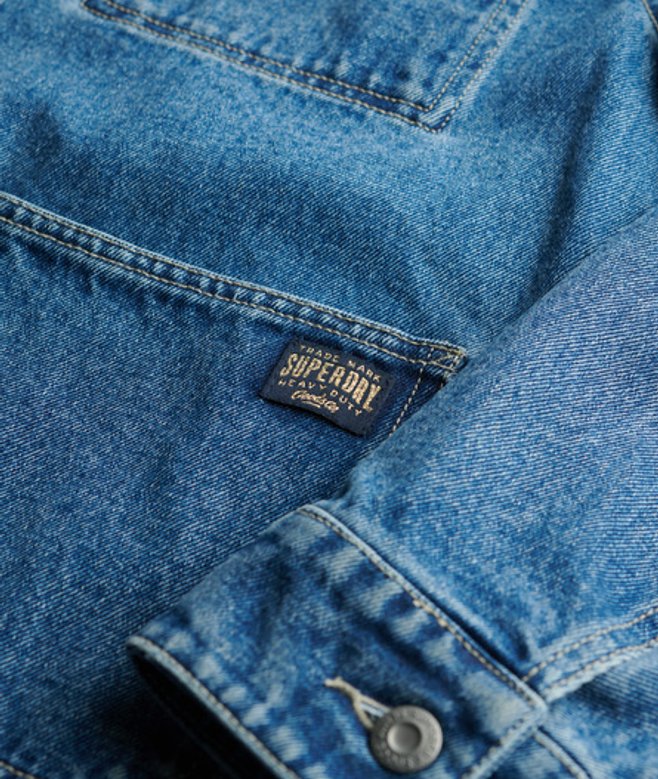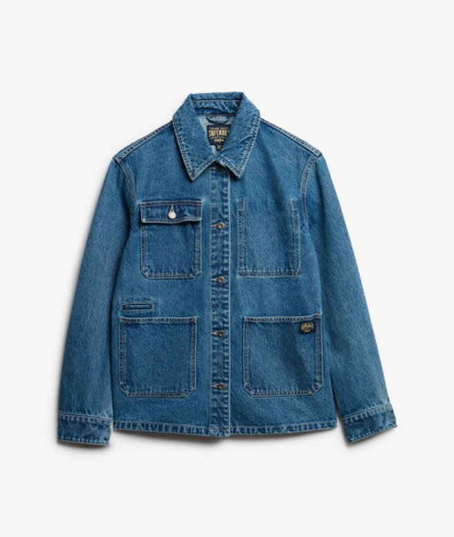 Kies je gebruikelijke maat Gewone kraag Knoopsluiting Manchetten met knopen Borstzak met knoopsluiting Twee taillezakken en borstzak aan de binnenkant Kenmerkend label op de zak De basic der basics: het Chore-spijkerjack.