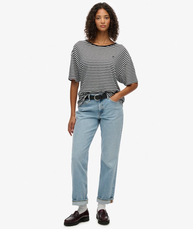 Oversized pasvorm - extra ruim en superrelaxed, geeft je stijl alle ruimte Ronde hals en verlaagde schouders Klein kenmerkend label op de zoom Ons Studios T-shirt met verlaagde schouders is eenvoudig maar onmisbaar.