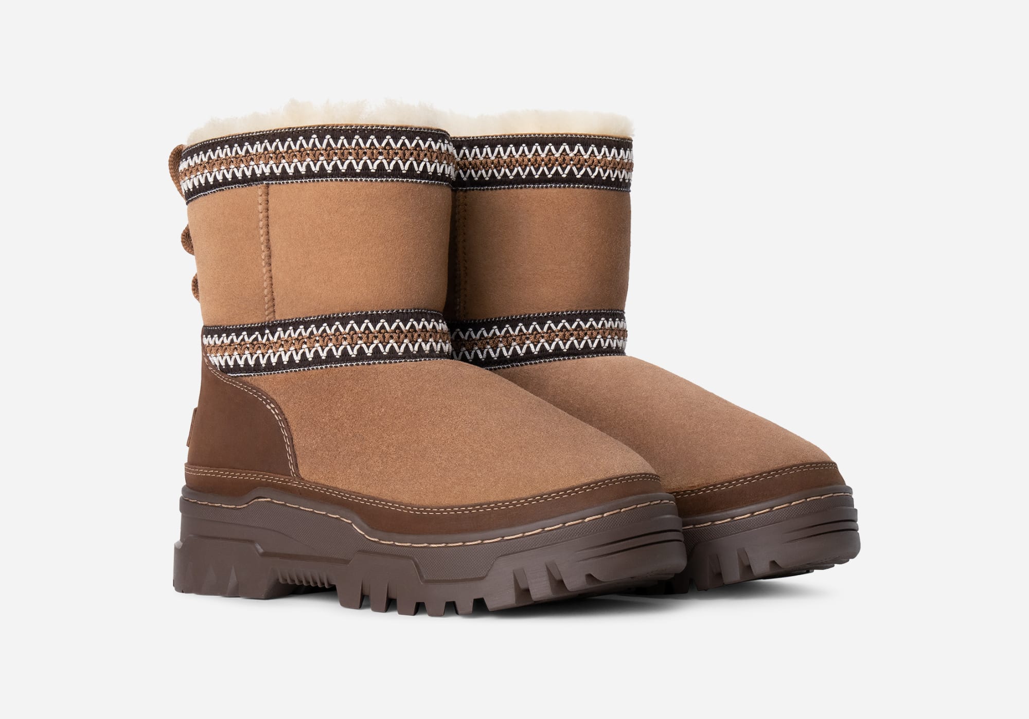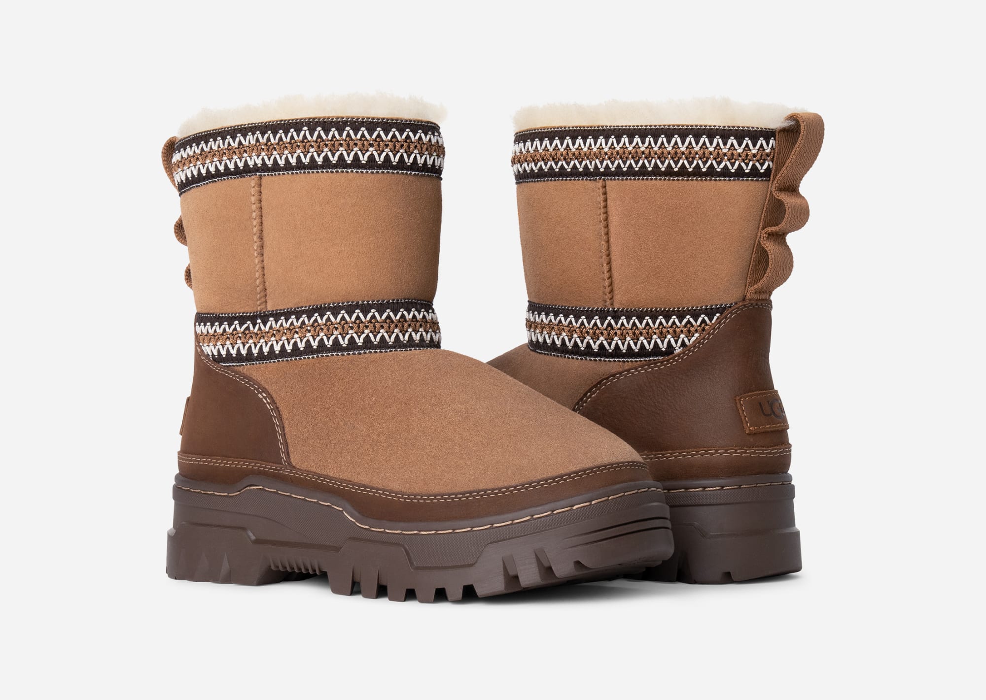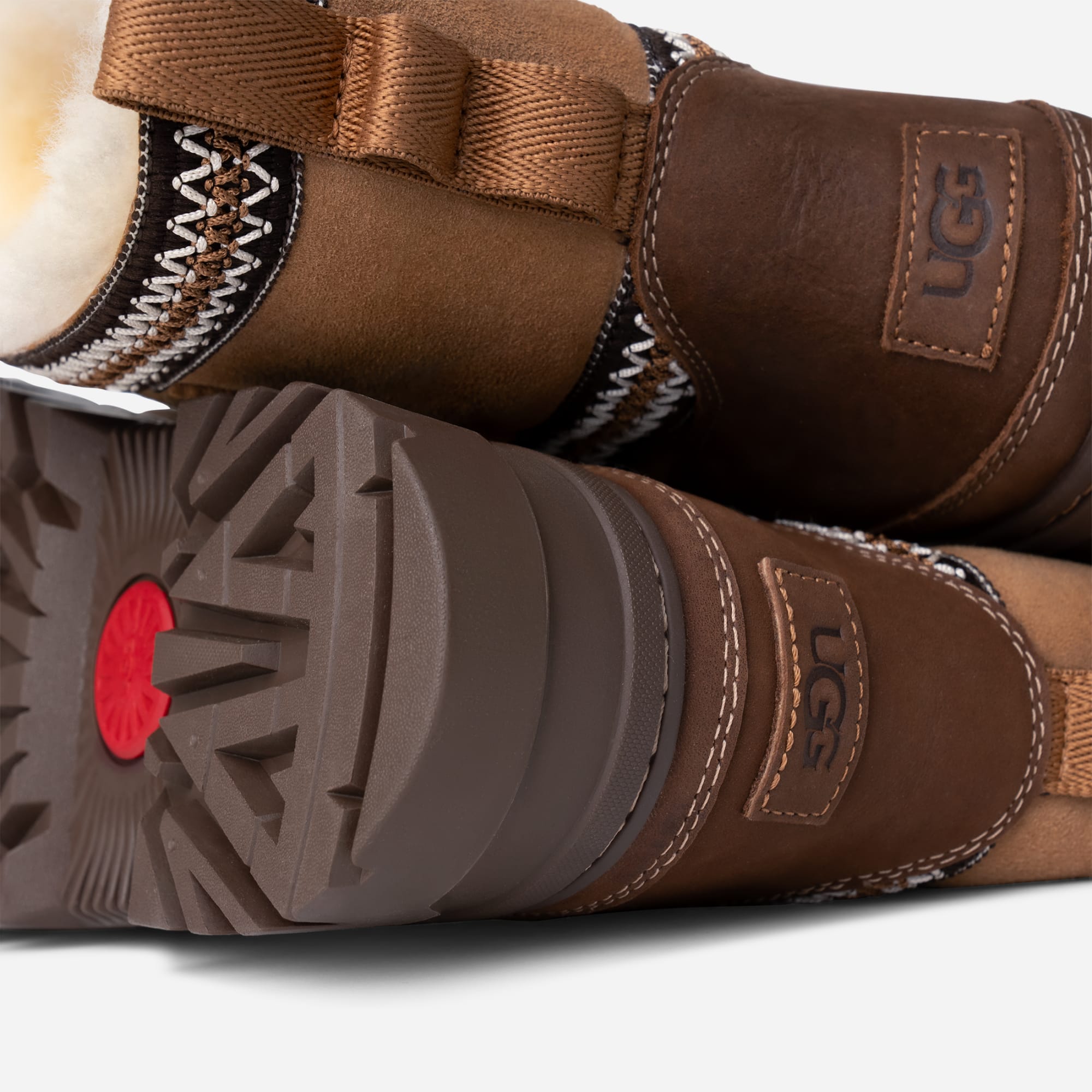 Dit model haalt inspiratie uit het iconische UGG-DNA, met twee UGGbraid-banden op de buitenkant en een binnenkant gevoerd met behaaglijke UGGplush.
