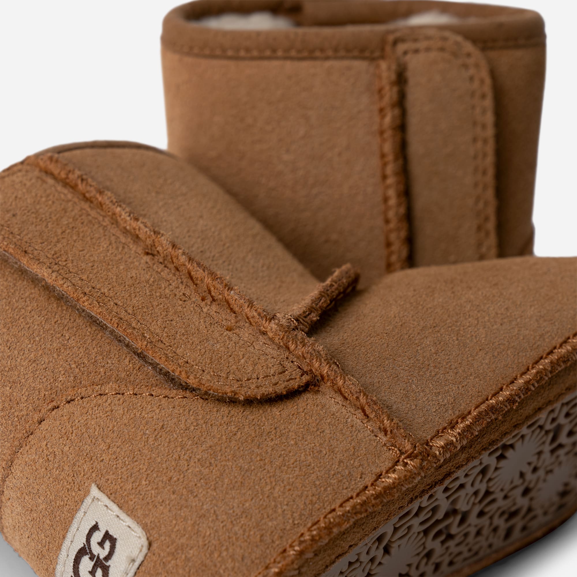 Baby's first UGG® Classic Boot! This boot has all the features of our full-size Classics, including our iconic suede upper and UGGplush™ upcycled wool blend in the lining and insole for our signature comfy and cushioned feel.