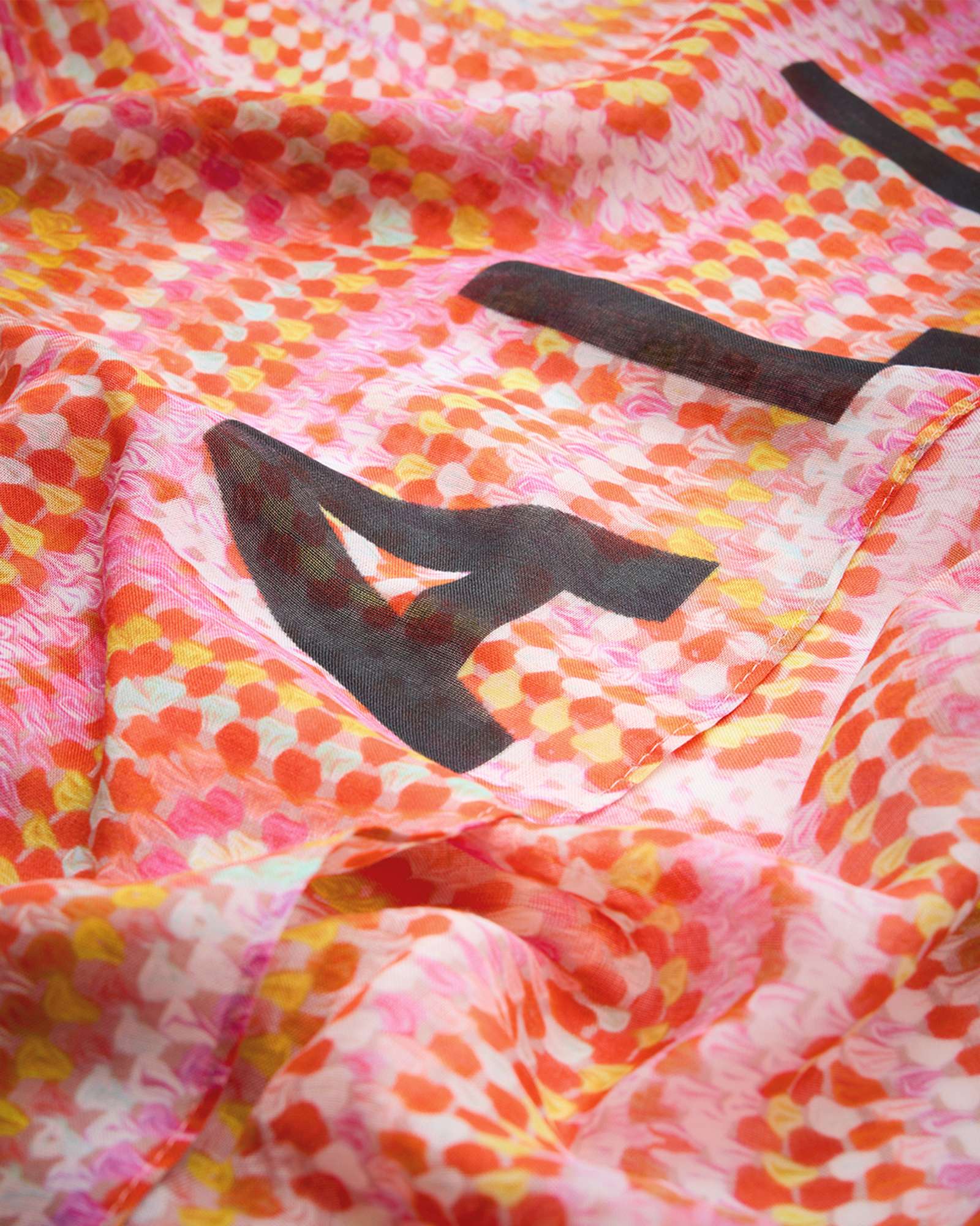 Luisa crochet-inspired print Draped silhouette Fringed edges Woven logo