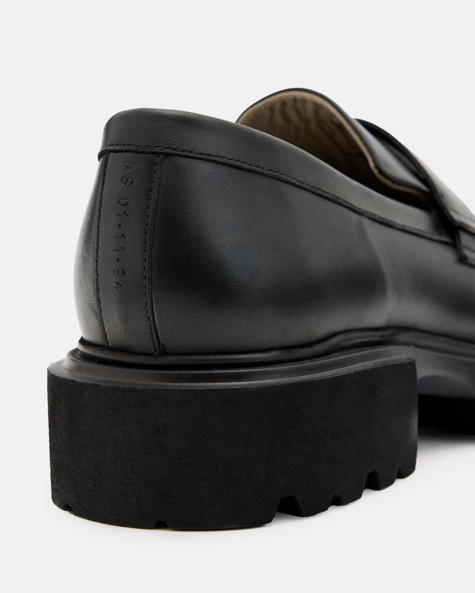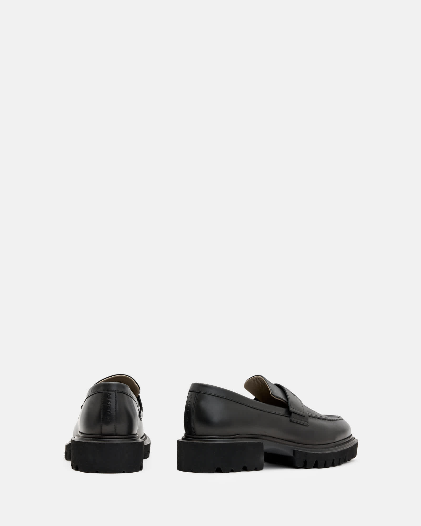 Loafers Round toe Casual shoe Slip on 01-11-94 All Saints heat stamp branding All Saints branded mudguard Cushioned insole If you are between sizes, we recommend sizing up