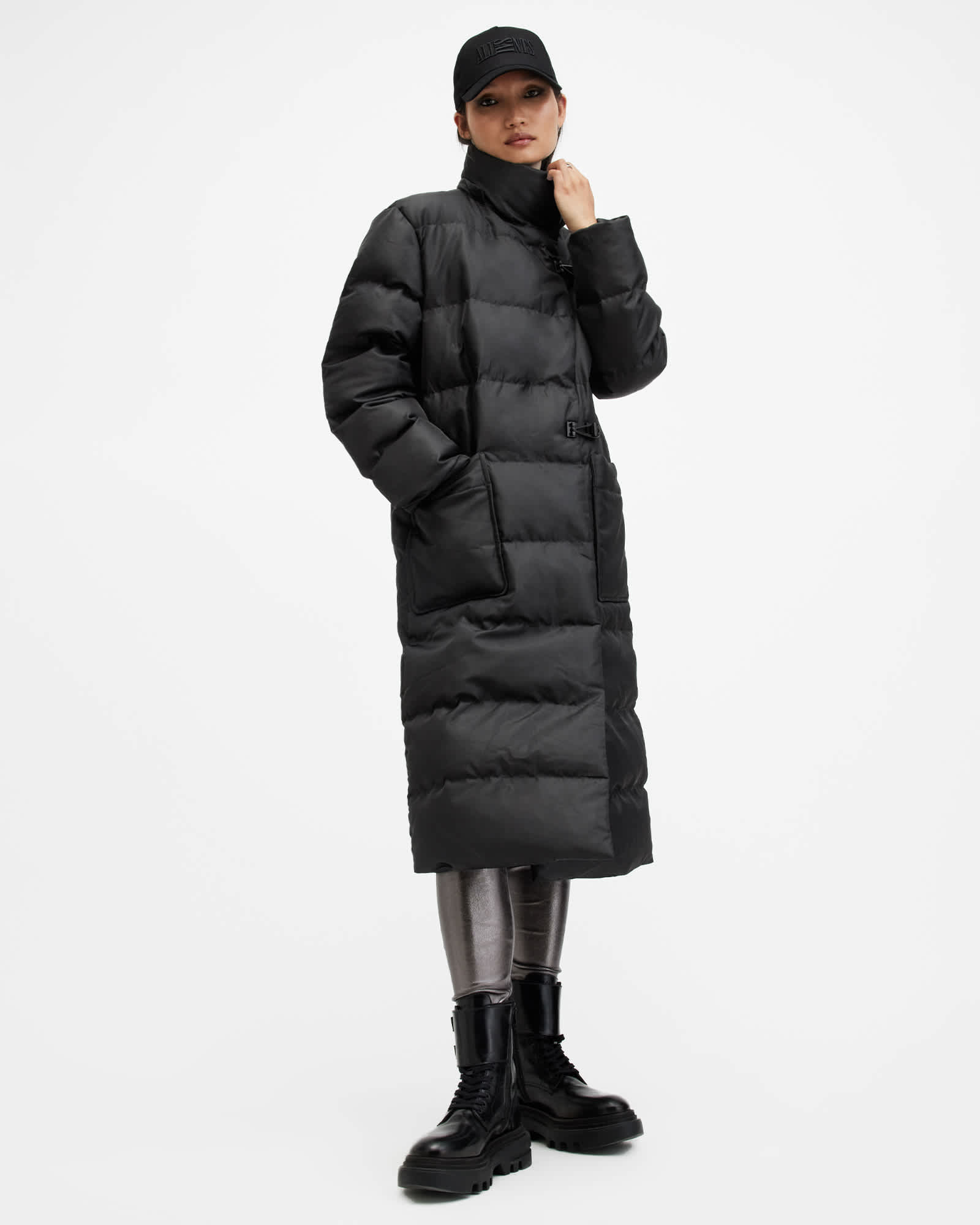 Wrap up warm in a coat that's shaped to a longline silhouette and quilted.