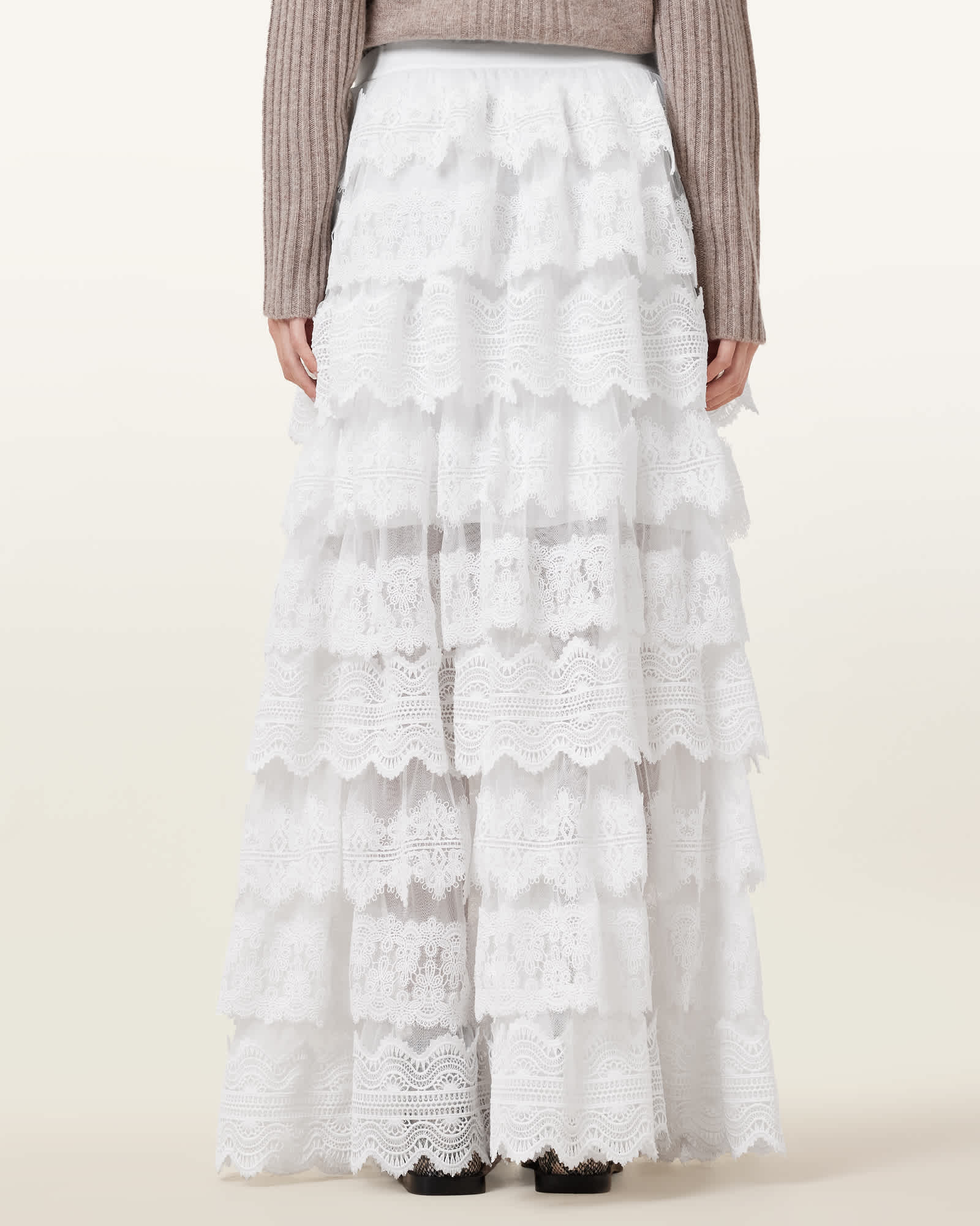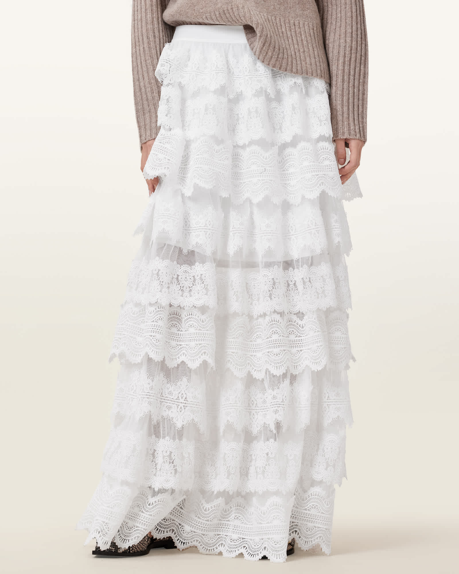 AllSaints Lizi Tiered Lace Maxi Skirt