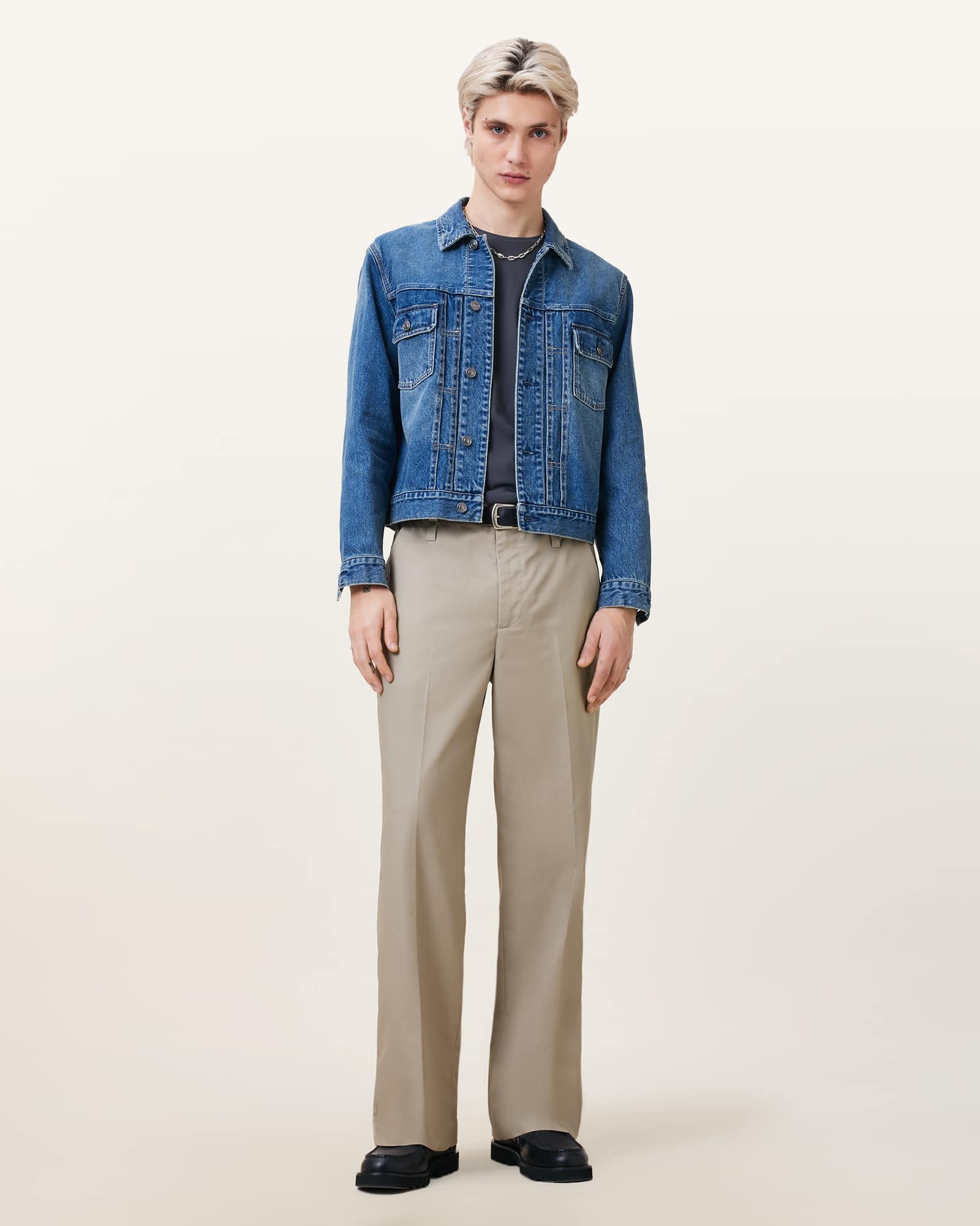 These pants are designed to a relaxed fit Zip closure Side slip pockets Back welt pockets All Saints branded metal detailing