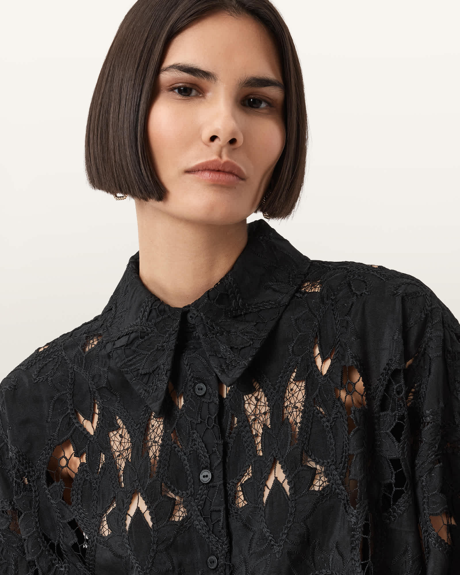 AllSaints Polyester Charli Relaxed Fit Embroidered Shirt