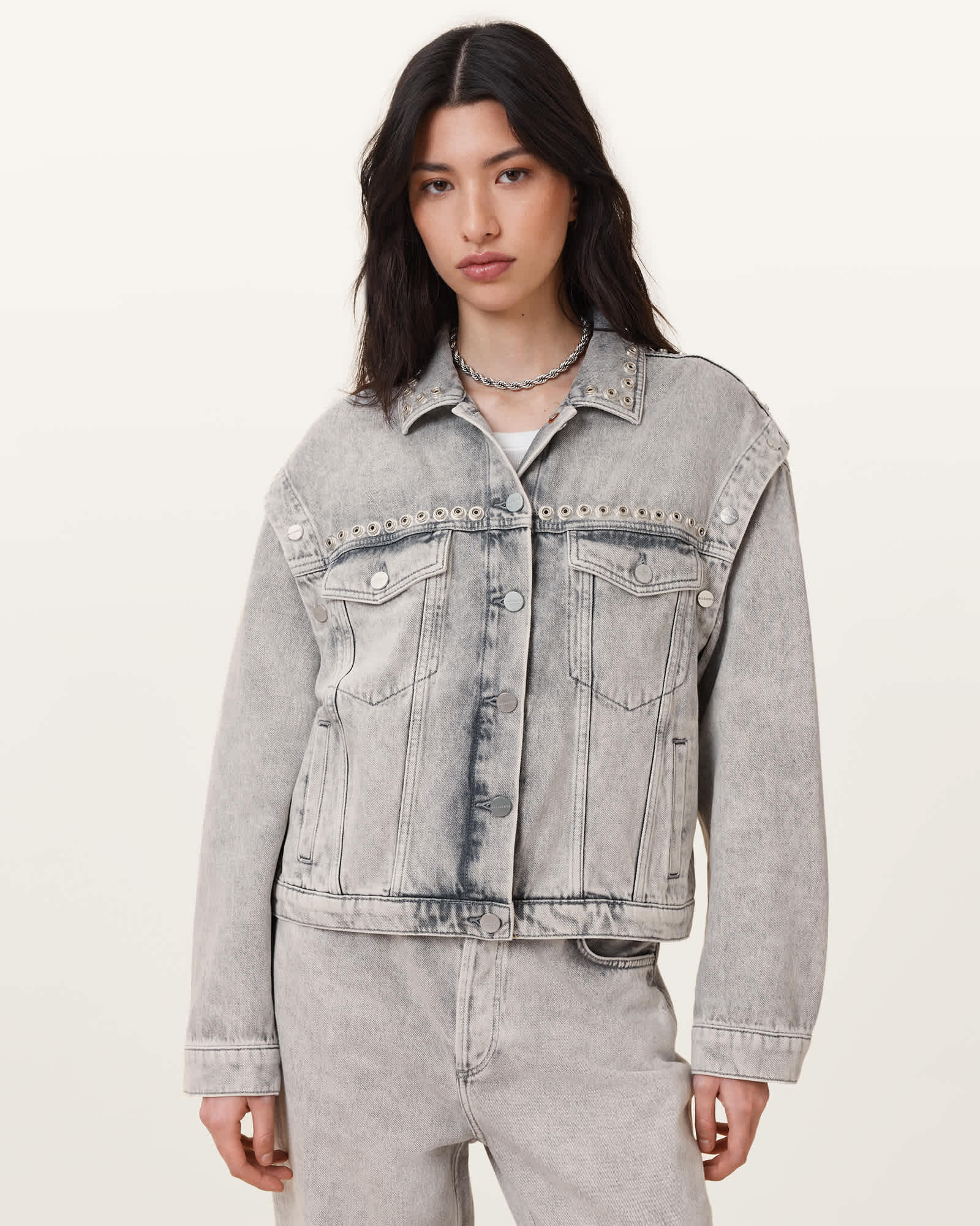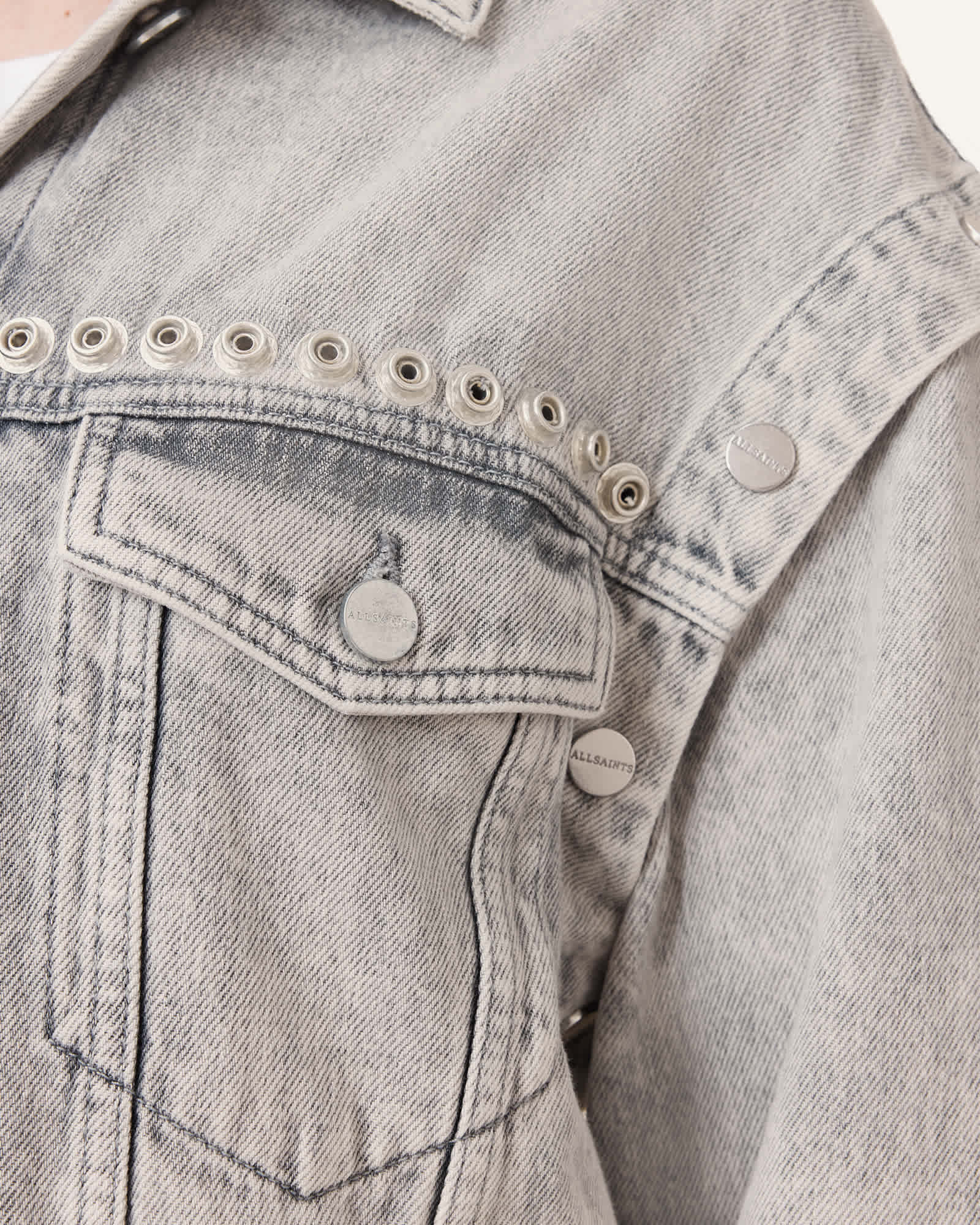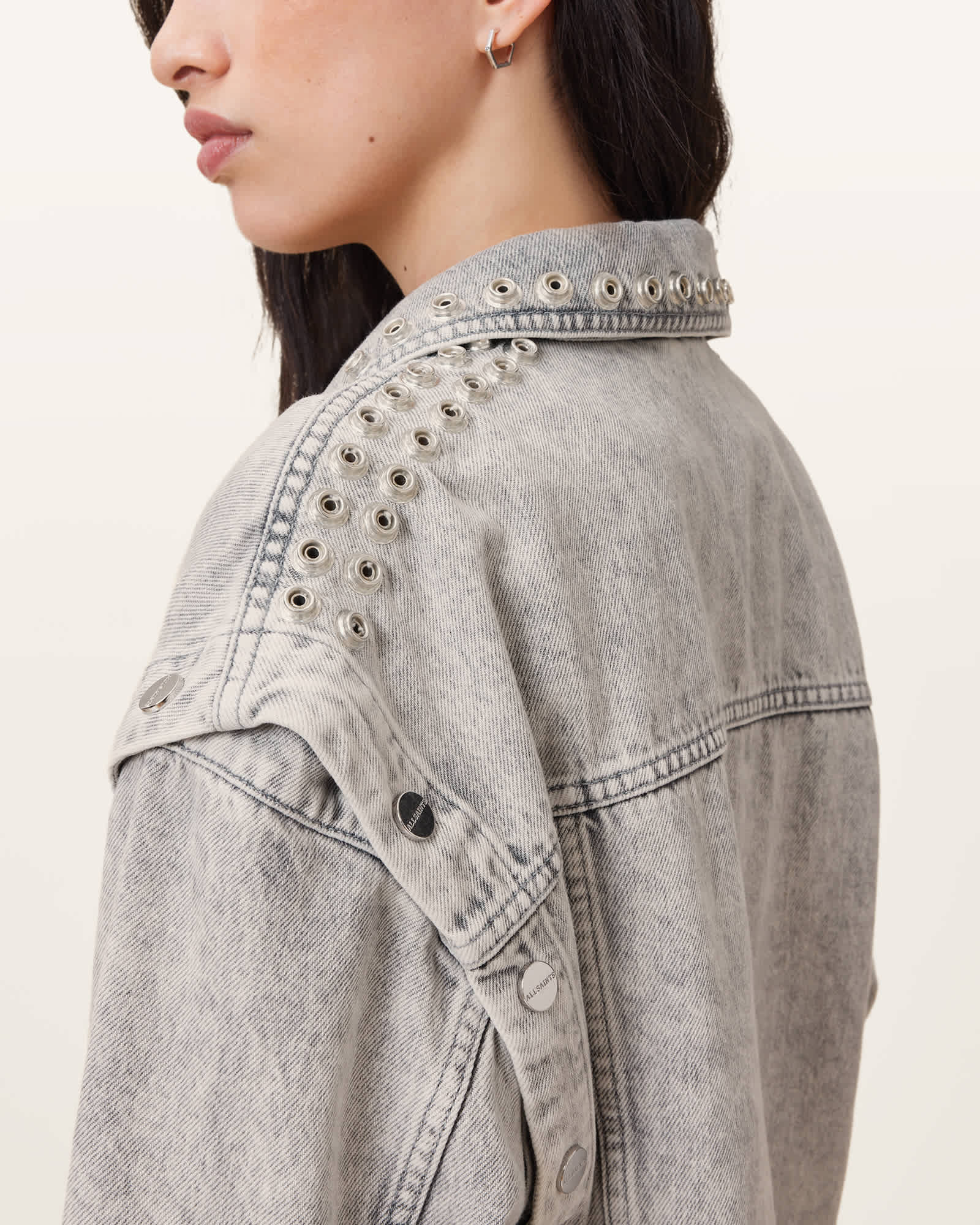 AllSaints Chlo Studded Denim Jacket,, Grey | ricciano DEUTSCHLAND