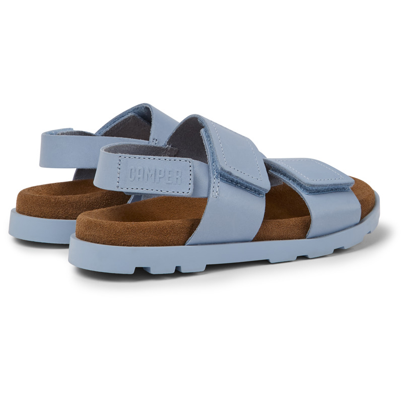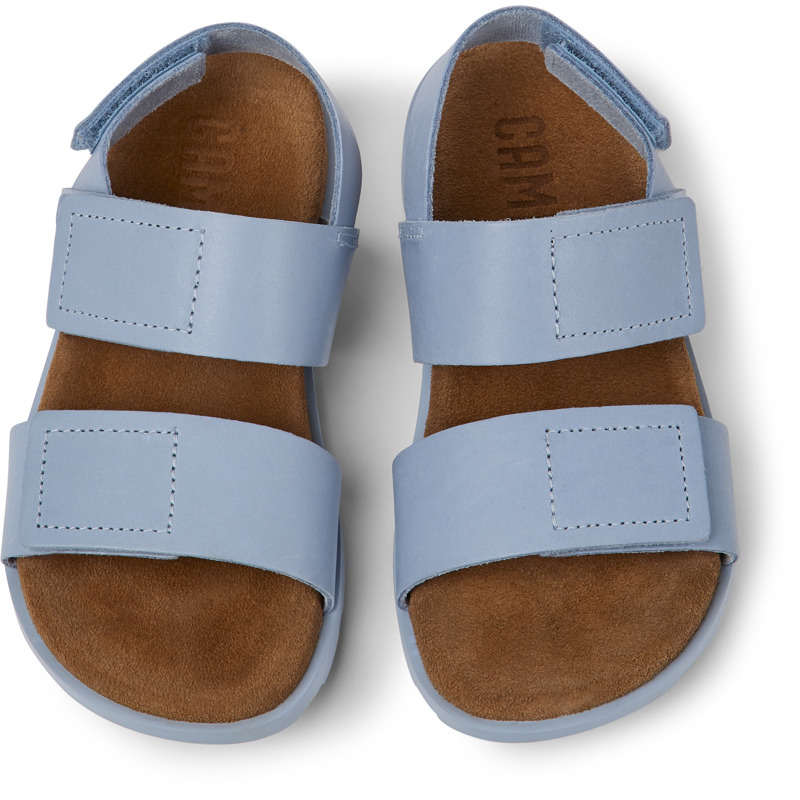 CAMPER - Light blue leather girls' sandals with hook-and-loop closing system and 100% rubber outsoles.