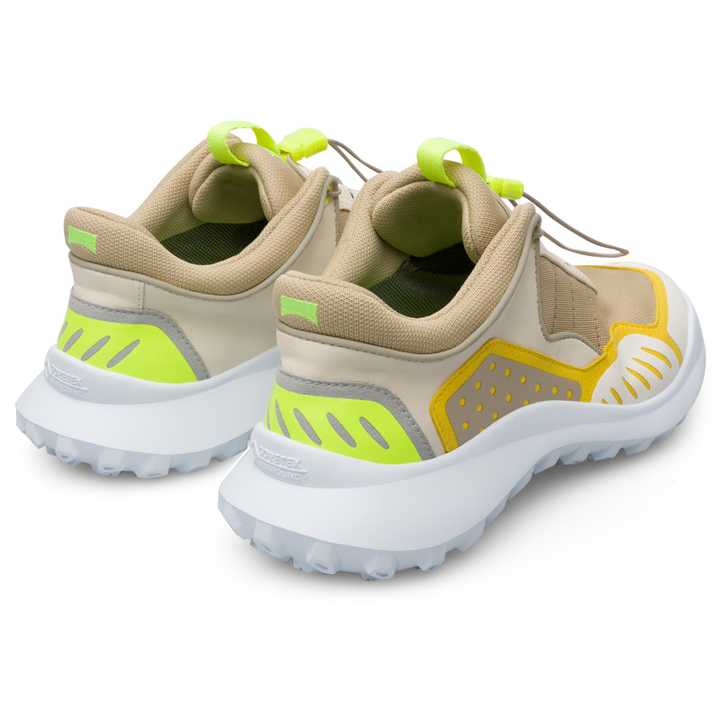 CAMPER - Damen-Sneaker in Cremefarben, Beige, Hellgrau und Neongelb mit dicker Sohle.