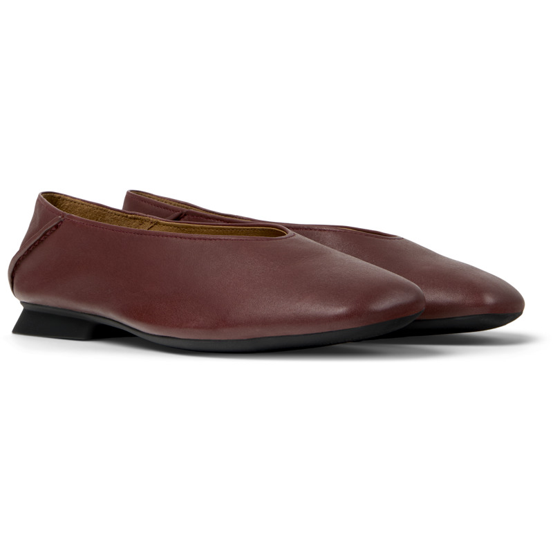 CAMPER - Burgundy calfskin ballerinas for women with TPU outsoles (20% recycled).