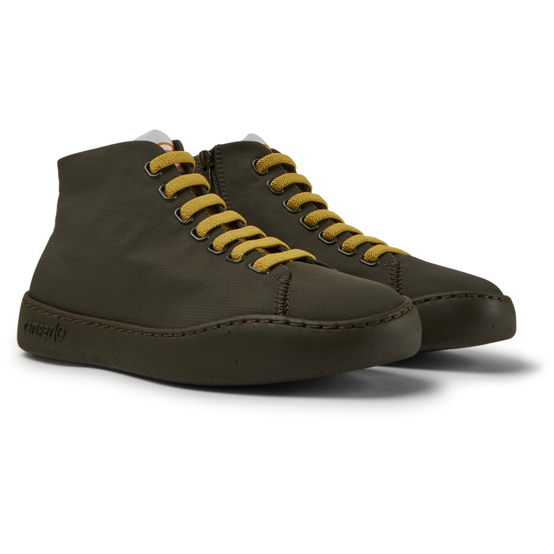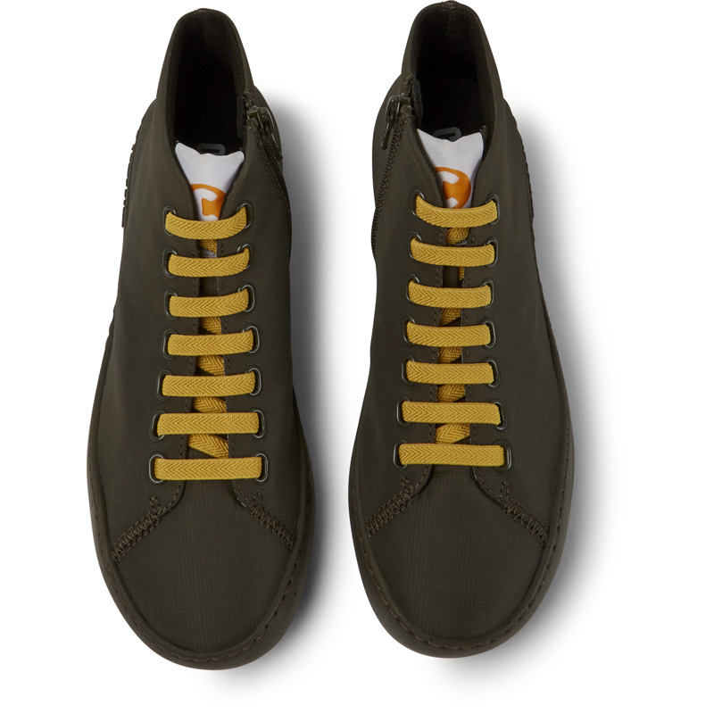 CAMPER - Green textile women's ankle boots with an 80% PET recycled upper, contrast EVA outsoles, a recycled OrthoLite® footbed and elastic laces.