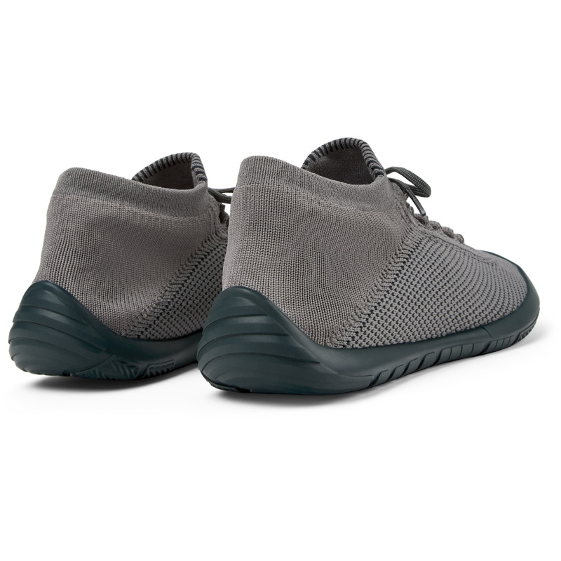 CAMPER - Gray recycled PET men's shoes using One-Piece Knit with removable OrthoLite® Recycled™ footbeds and rubber outsoles.