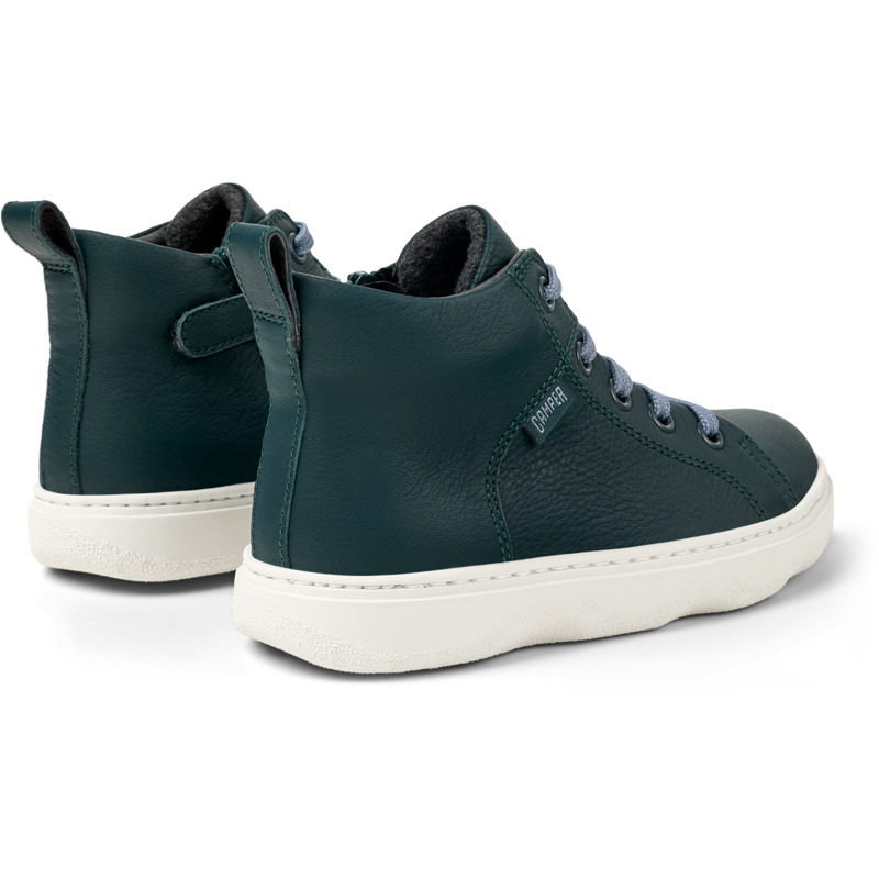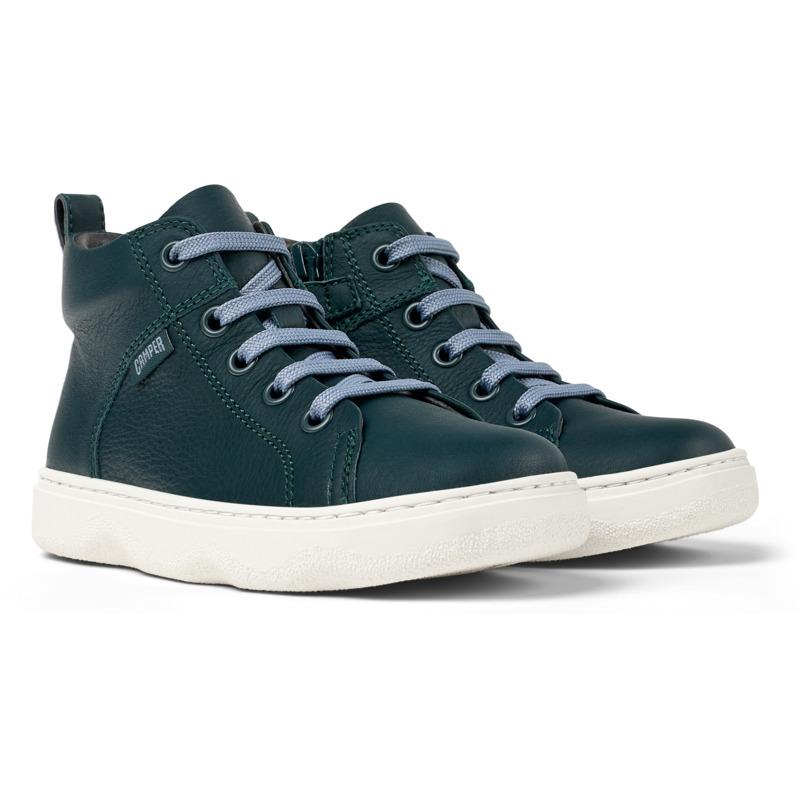 CAMPER - Dark green leather kids' ankle boots with OrthoLite® Recycled™ removable footbeds and rubber outsoles.
