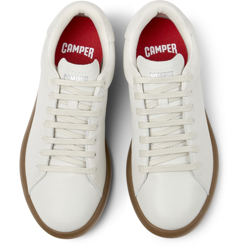CAMPER - White calfskin non-dyed leather sneakers for women with OrthoLite® Recycled™ footbeds and rubber outsoles.