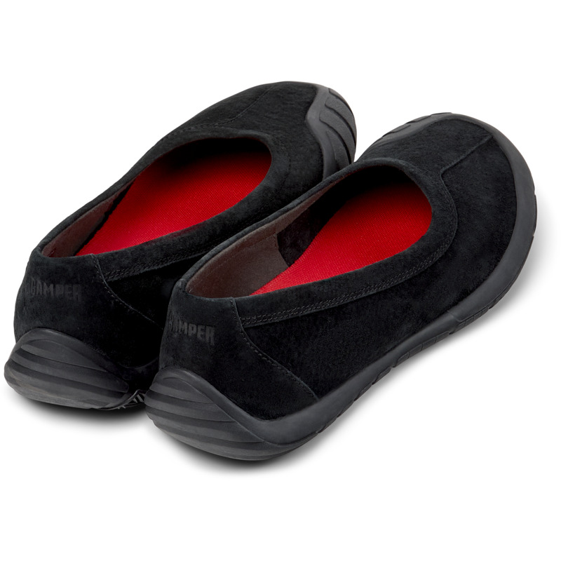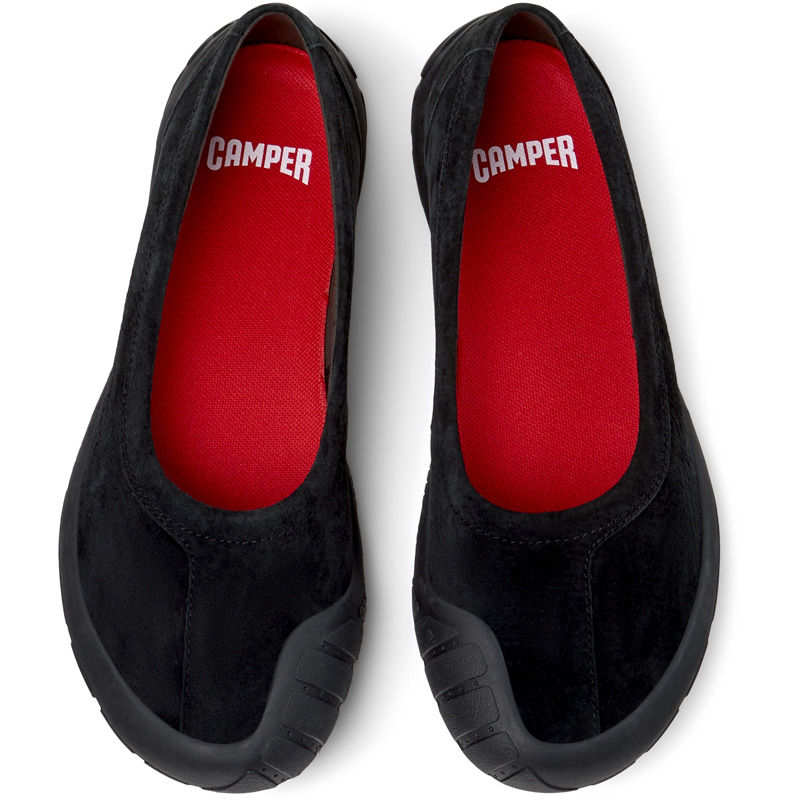 CAMPER - Black nubuck women's sneakers with OrthoLite® Recycled™ footbeds and rubber outsoles (40% natural, 23% recycled).