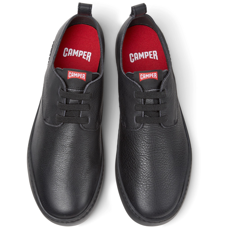 CAMPER - Black calfskin leather shoes for men with OrthoLite® Recycled™ footbed, elastic laces and EVA outsoles (20% recycled).