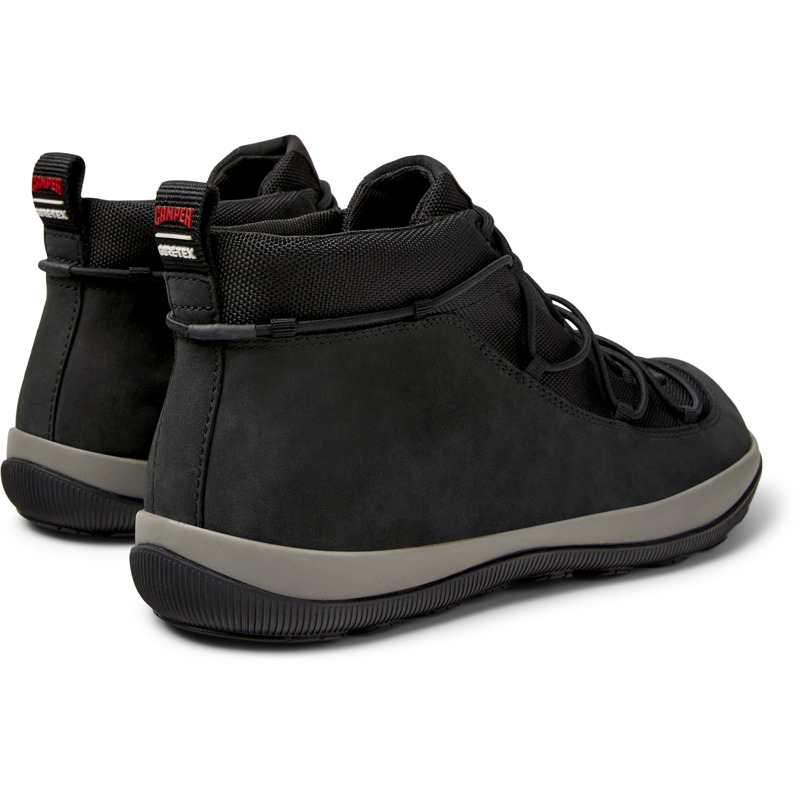 CAMPER - Black textile and nubuck men's mid boots with GORE-TEX® ePE membranes, OrthoLite® Recycled™ footbeds, elastic laces, EVA midsole, and rubber outsoles (27% natural).