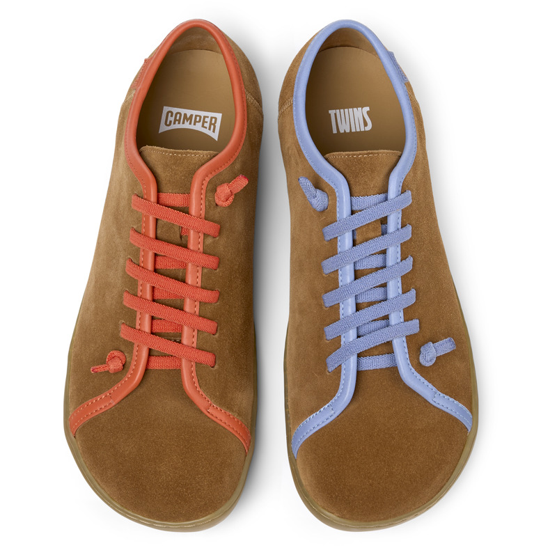 CAMPER - Multicolor calfskin suede and leather shoes for men with PU footbeds, elastic laces, and TPU outsoles (20% recycled).