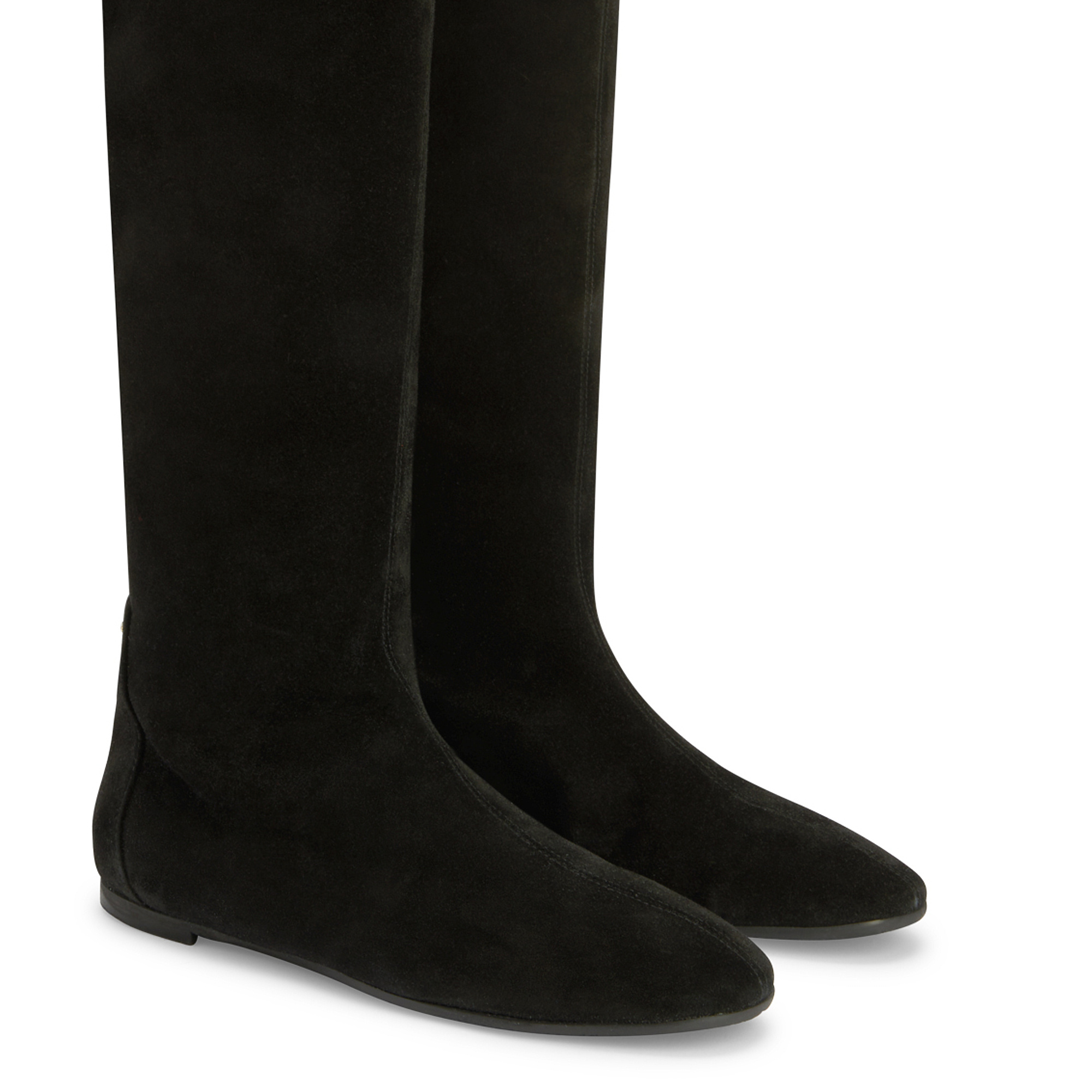 Flat over-the-knee boots in suede with a metallic detail and rubber sole.