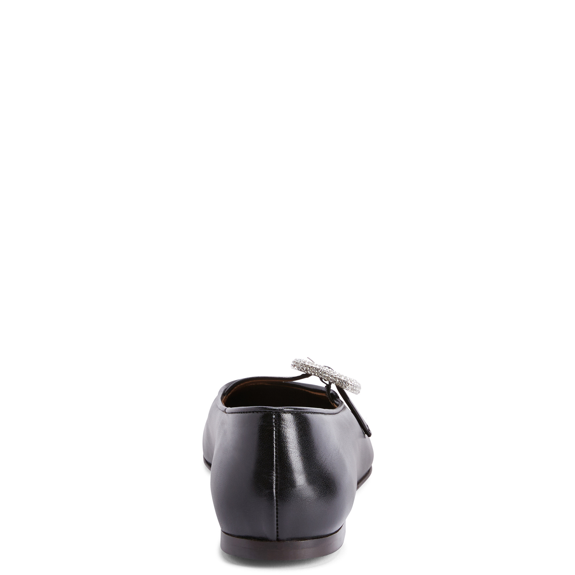 Grosgrain-trimmed Mary Jane ballerinas in leather with rhinestoned buckle on the strap.