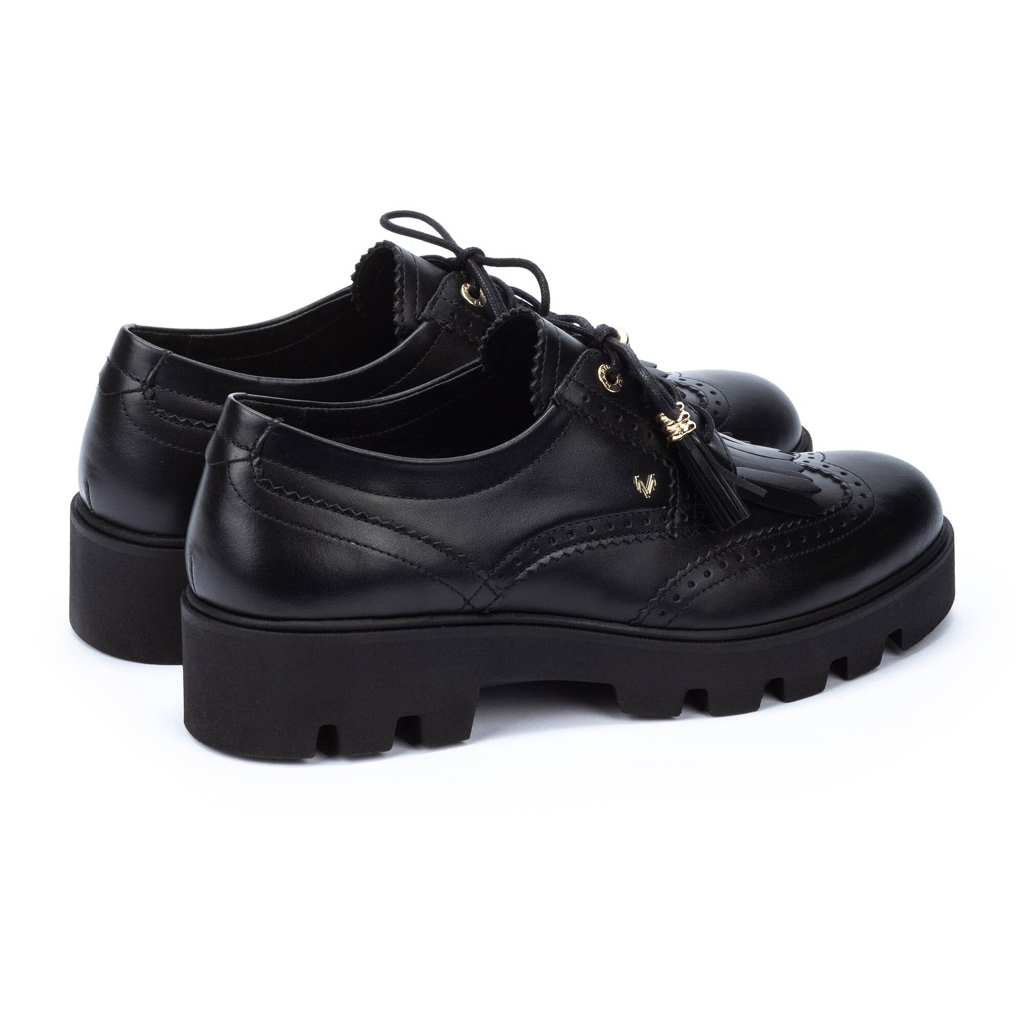 Está fabricado 100% en piel napa, con el interior forrado en piel.Se caracteriza por tener un piso de goma antideslizante y planta de gel, que proporcionan un extra de confort.Su estilo elegante y renovado, gracias a sus picados, lo convierte en el modelo ideal para completar todos tus looks tanto de oficina como para el día a día.