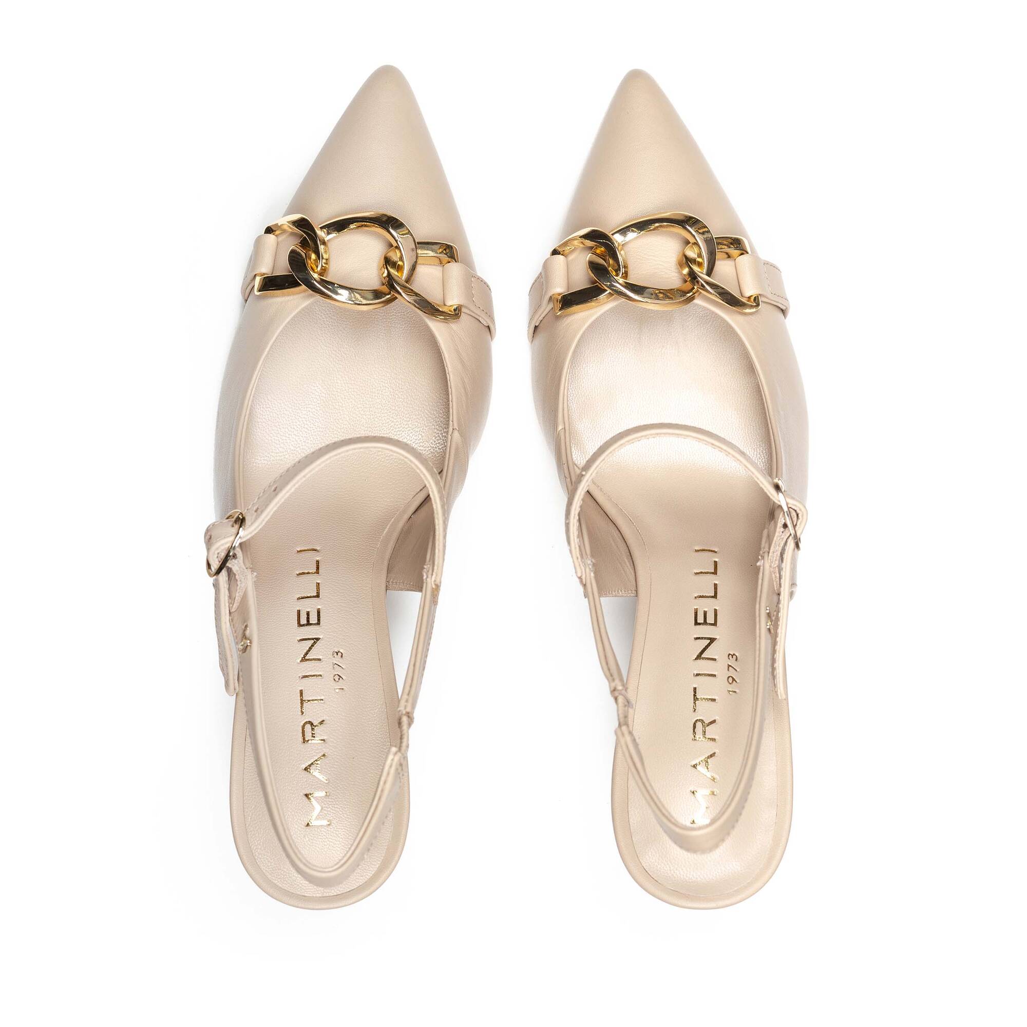 El salón destalonado Thelma de mujer es el modelo icónico de Martinelli, fabricado en 100% piel napa, con forro interior también de piel.