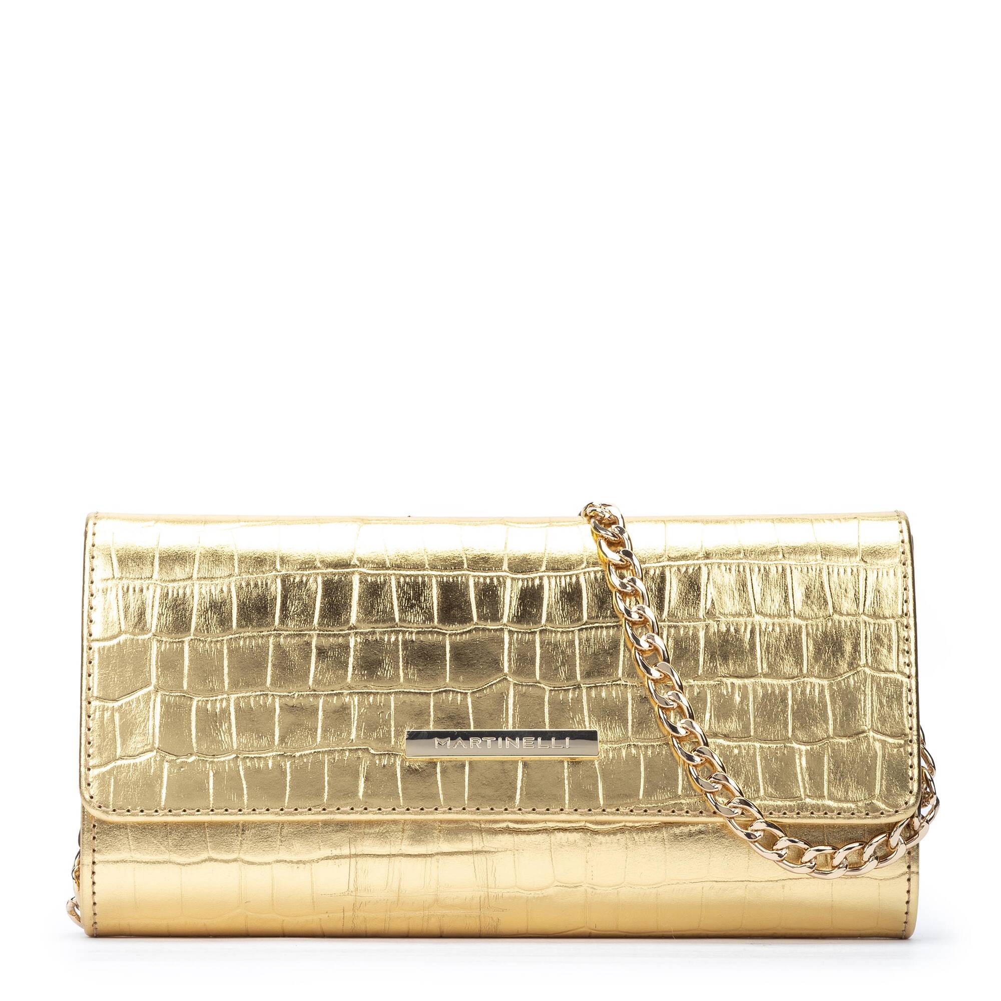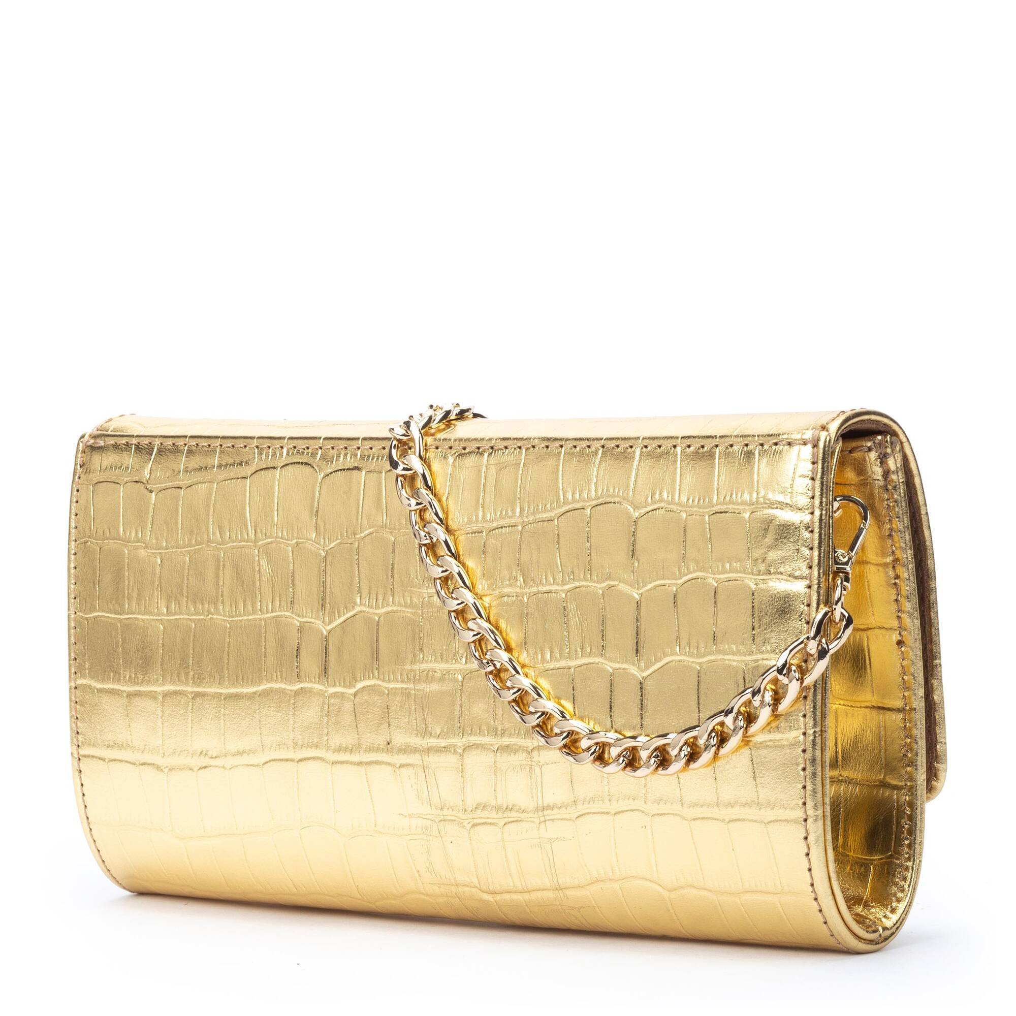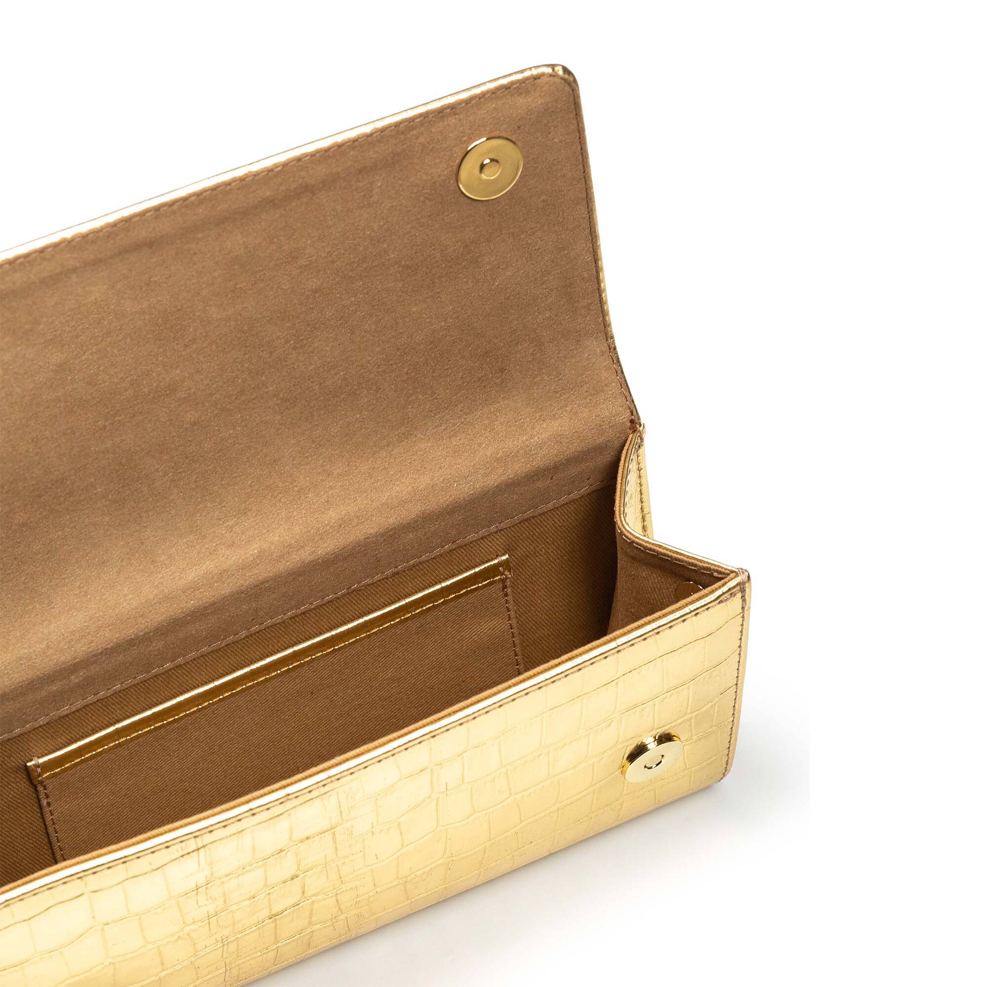 Con unas medidas de 23x13x4 cm y un bolsillo interior, podrás guardar lo necesario con comodidad.Un bolso de tamaño medio, muy funcional, con piel efecto "cocco", ideal para completar tus looks en cualquier evento gracias a su tono dorado.