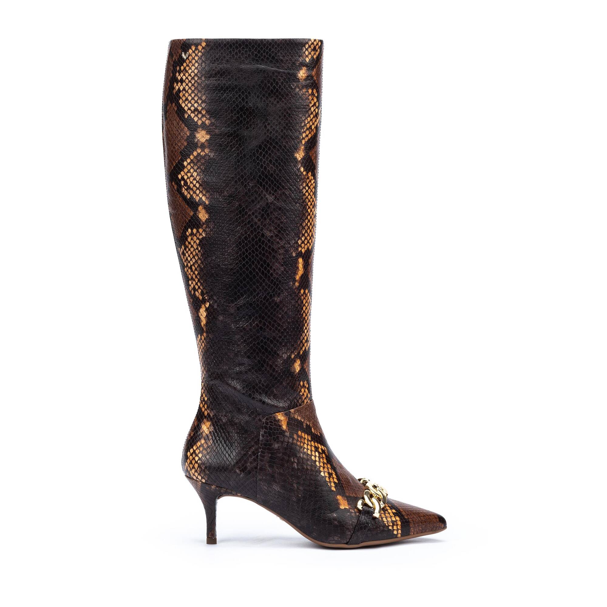 Bota alta con adorno de cadena en la punta y cierre de cremallera.