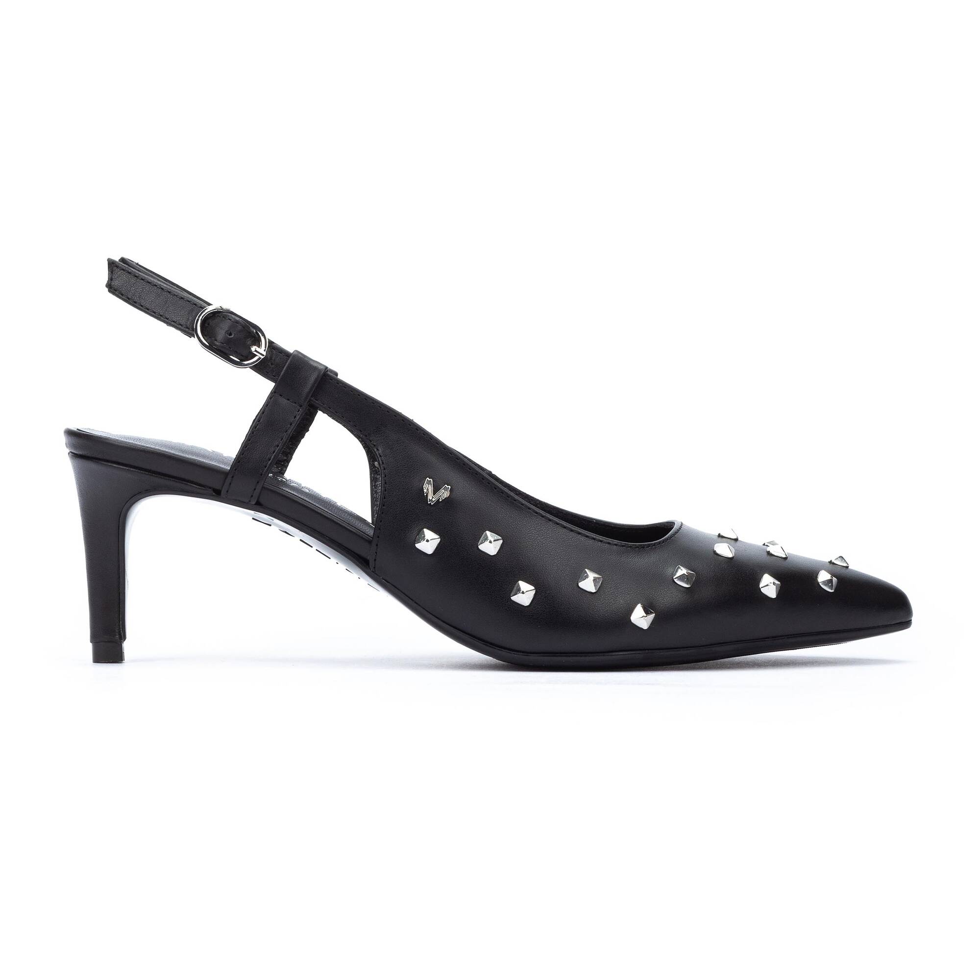 Confeccionado en piel, tacón de 7 cm y punta fina.