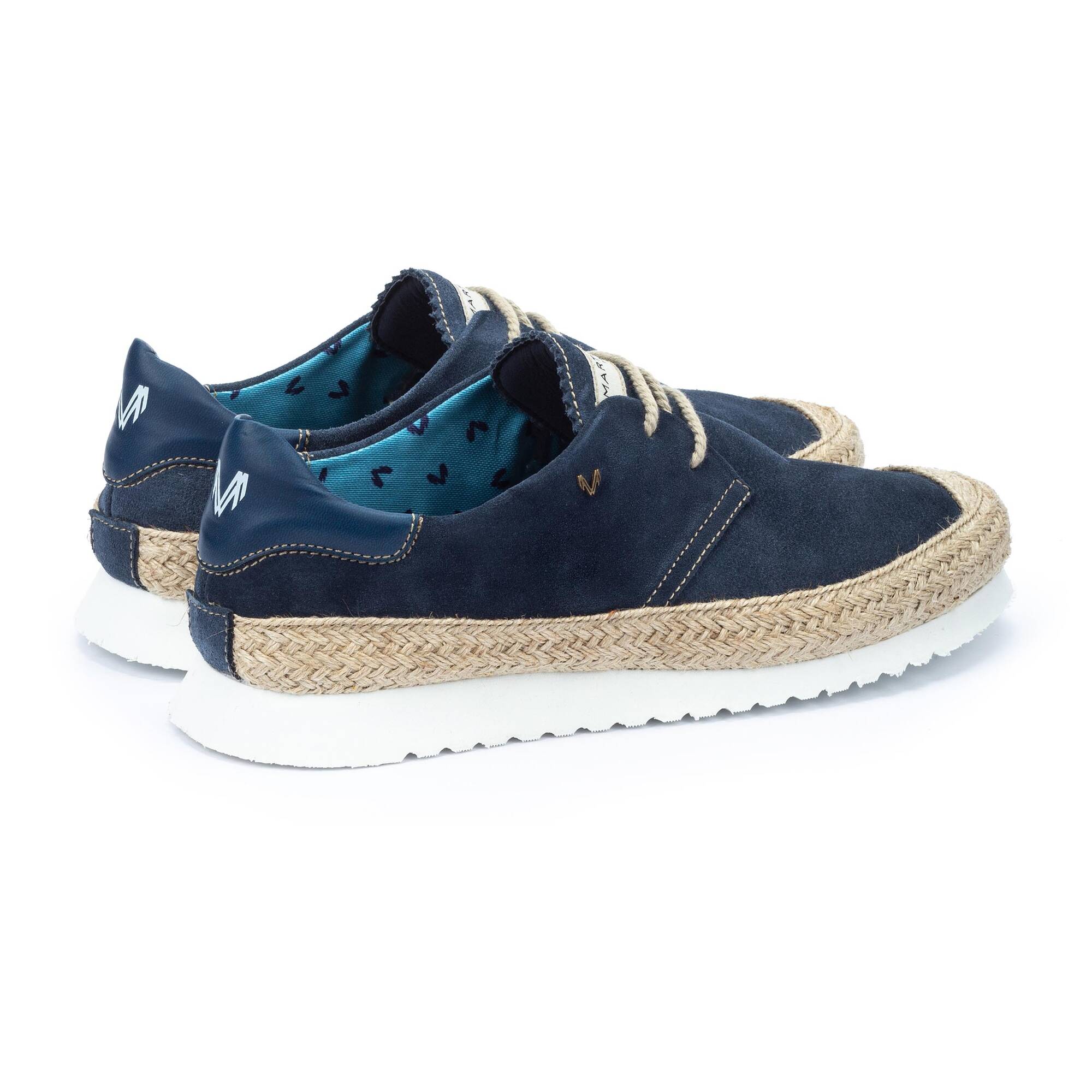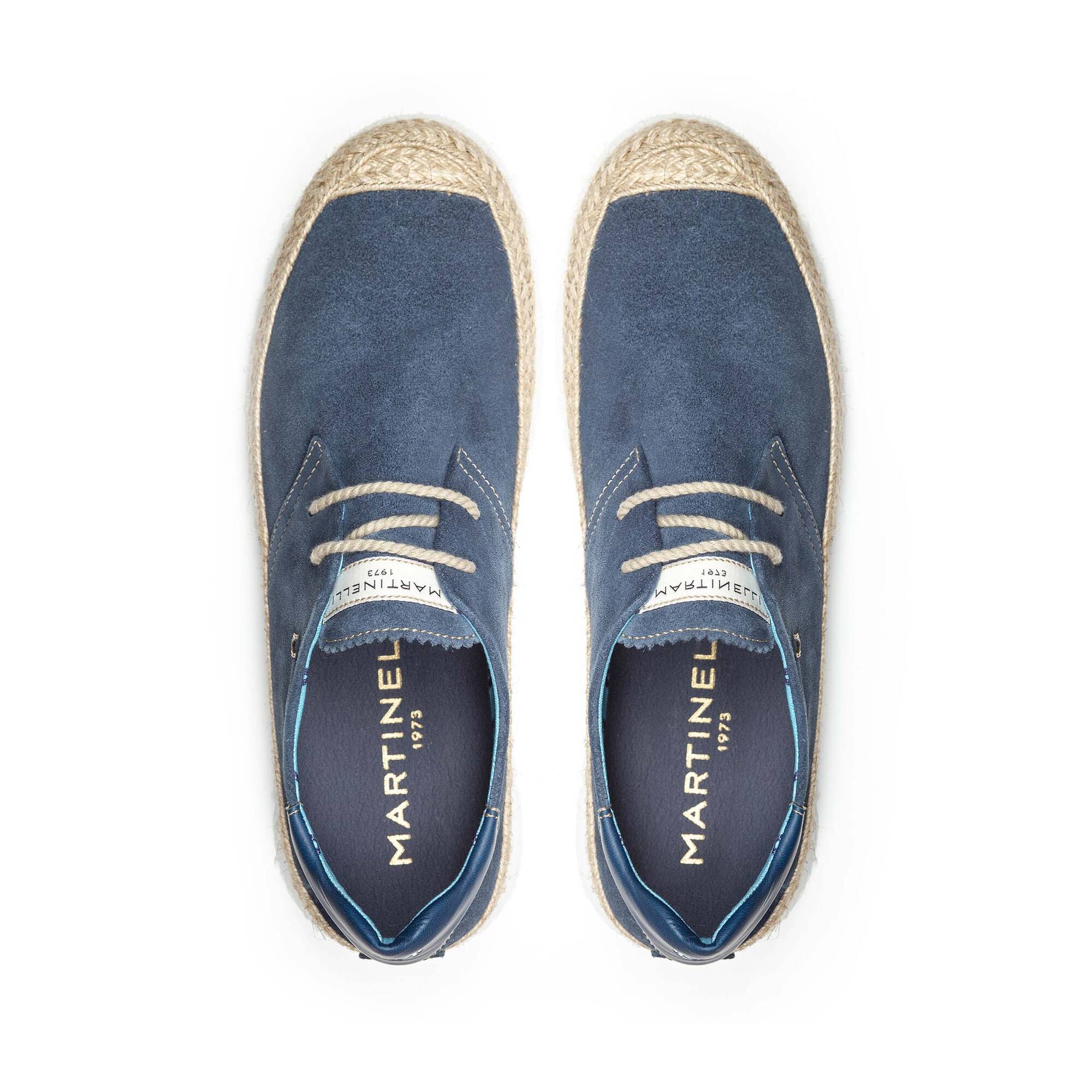 Estilo blucher con forro de tejido personalizado y solo dos ojetes con codones tipo cabo marinero.