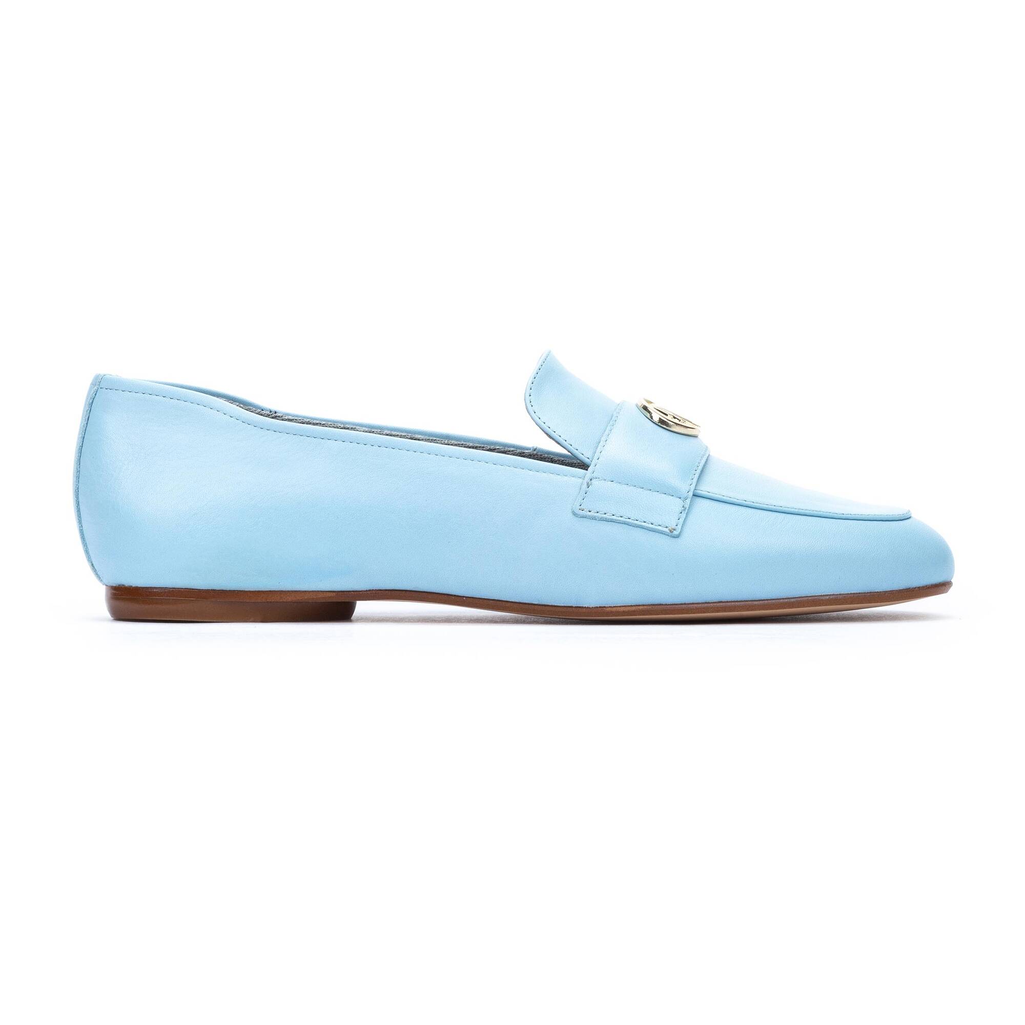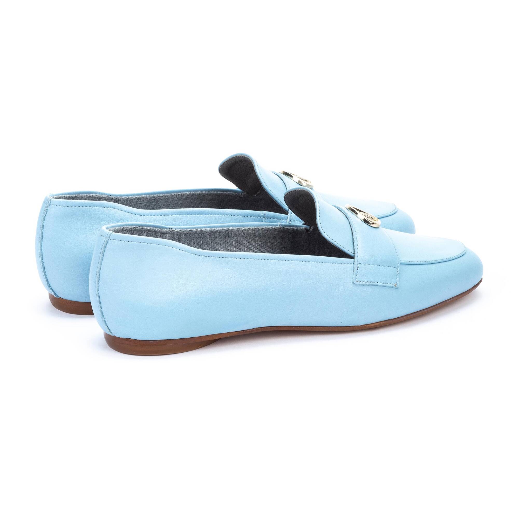 Mocasín con adorno metálico de hebilla, muy flexible y cómodo.