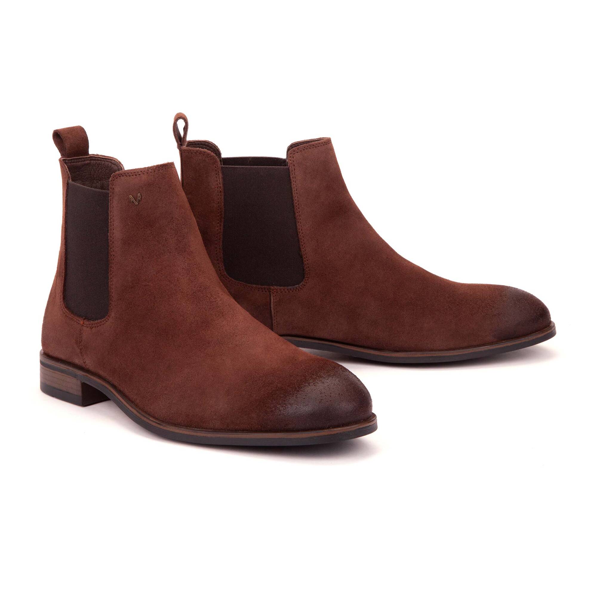 Botines de piel para hombre con suela de 3 cm y punta almendrada.