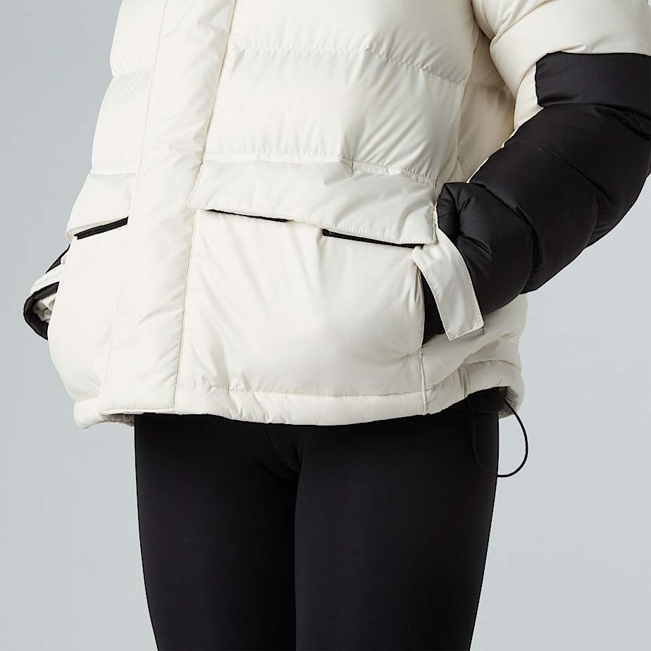 Ziehe die Kapuze für zusätzlichen Schutz hoch und stecke kalte Hände in die von zwei Seiten zugänglichen Taschen, wenn du sie aufwärmen willst.