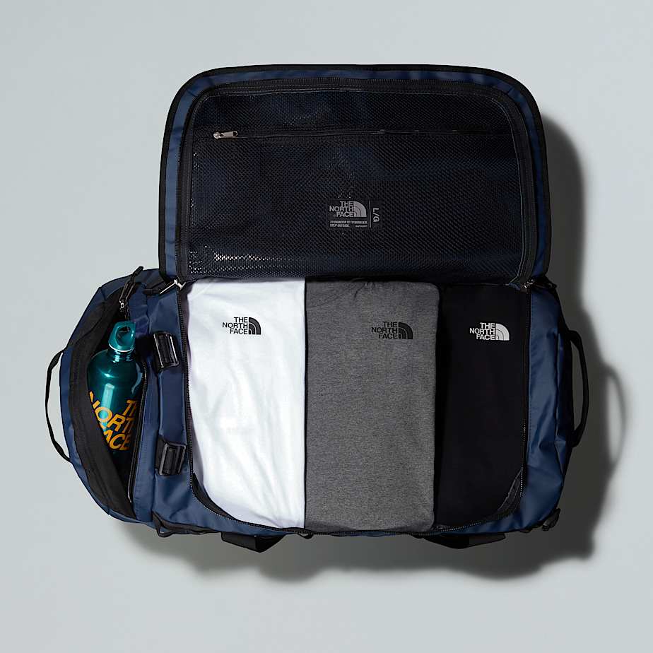Duffel de 95 litros para viajar, ir al trabajo y explorar a diario Diseño amplio: dispone de mucho espacio interior para llevar efectos personales imprescindibles para pasar el día.La Base Camp Duffel es todo un icono por una buena razón, se trata de una pieza de equipamiento en la que aventureros y viajeros de todo el mundo han confiado para llevar en sus viajes por el Himalaya o por la ciudad.