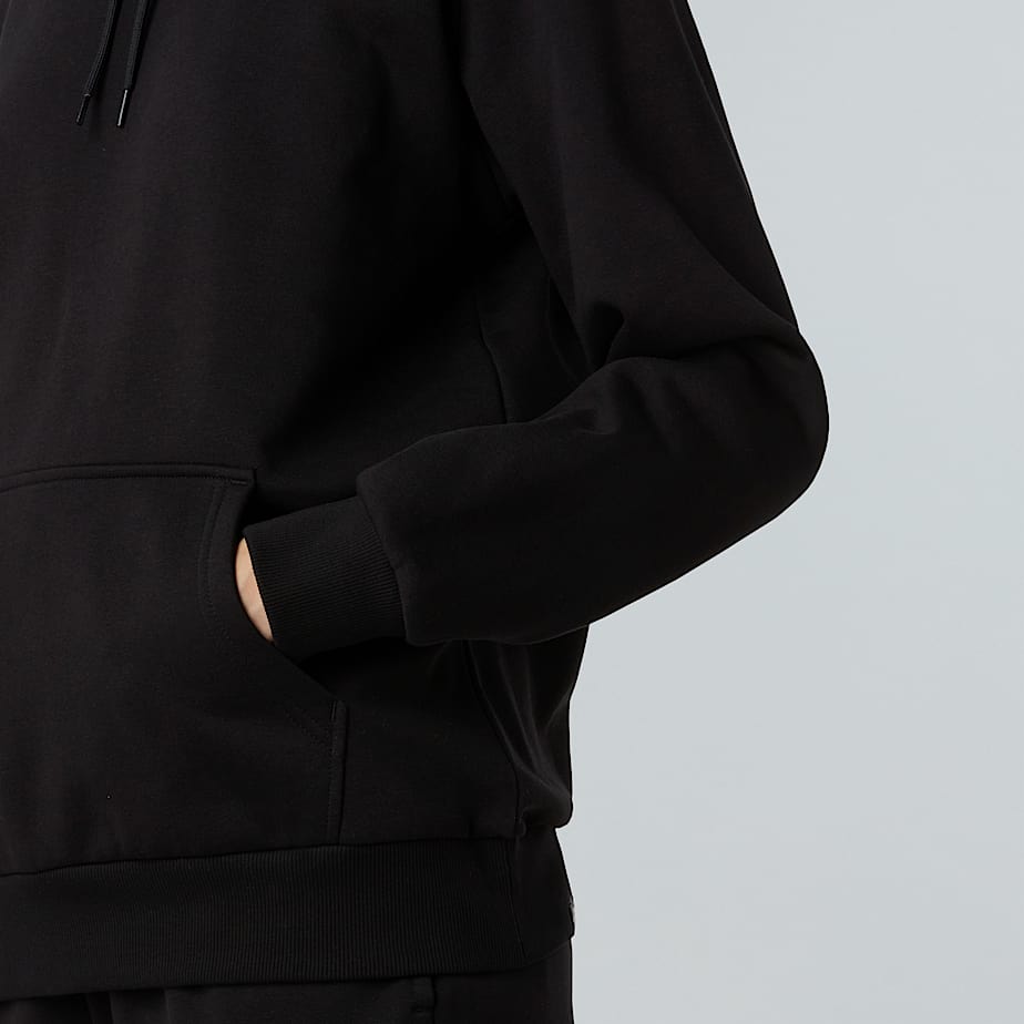 Presenta un diseño cómodo, con un discreto logotipo de la media cúpula en el pecho y un bolsillo de canguro para llevar las manos al abrigo.