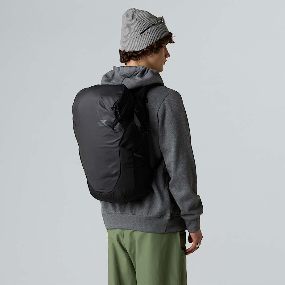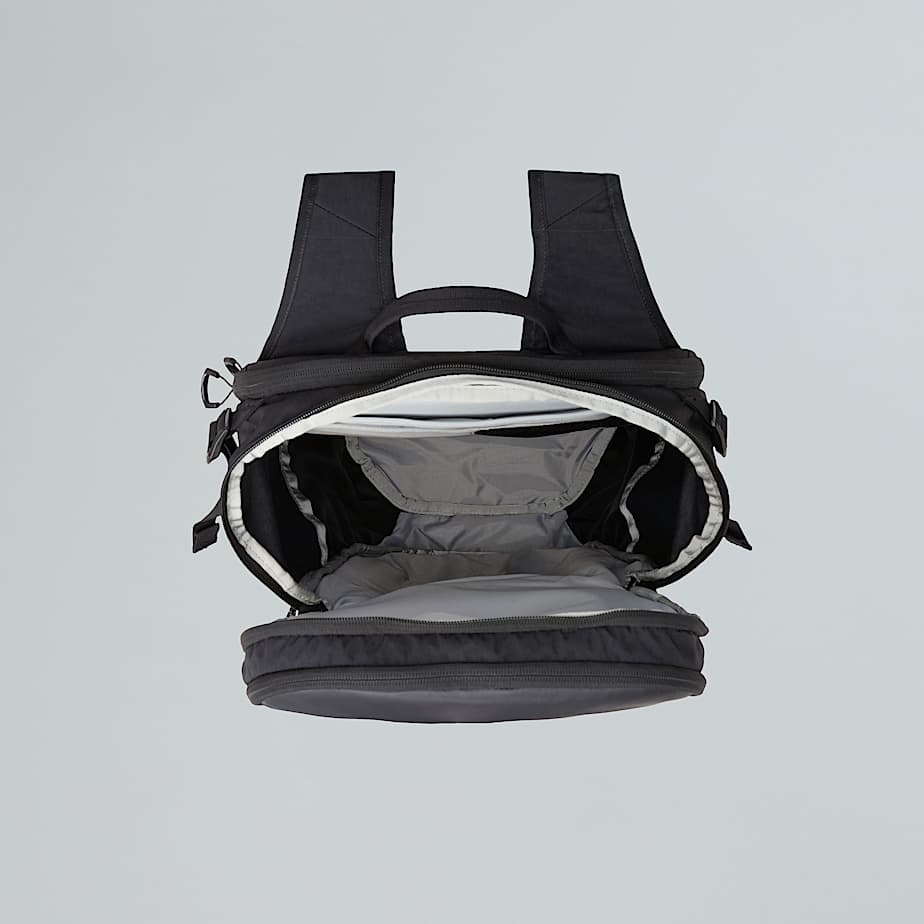 Y dado que es probable que llenes realmente esta mochila, hay correas de compresión laterales y elevadores de carga en las correas de los hombros que ayudan a ajustar la distribución del peso.
