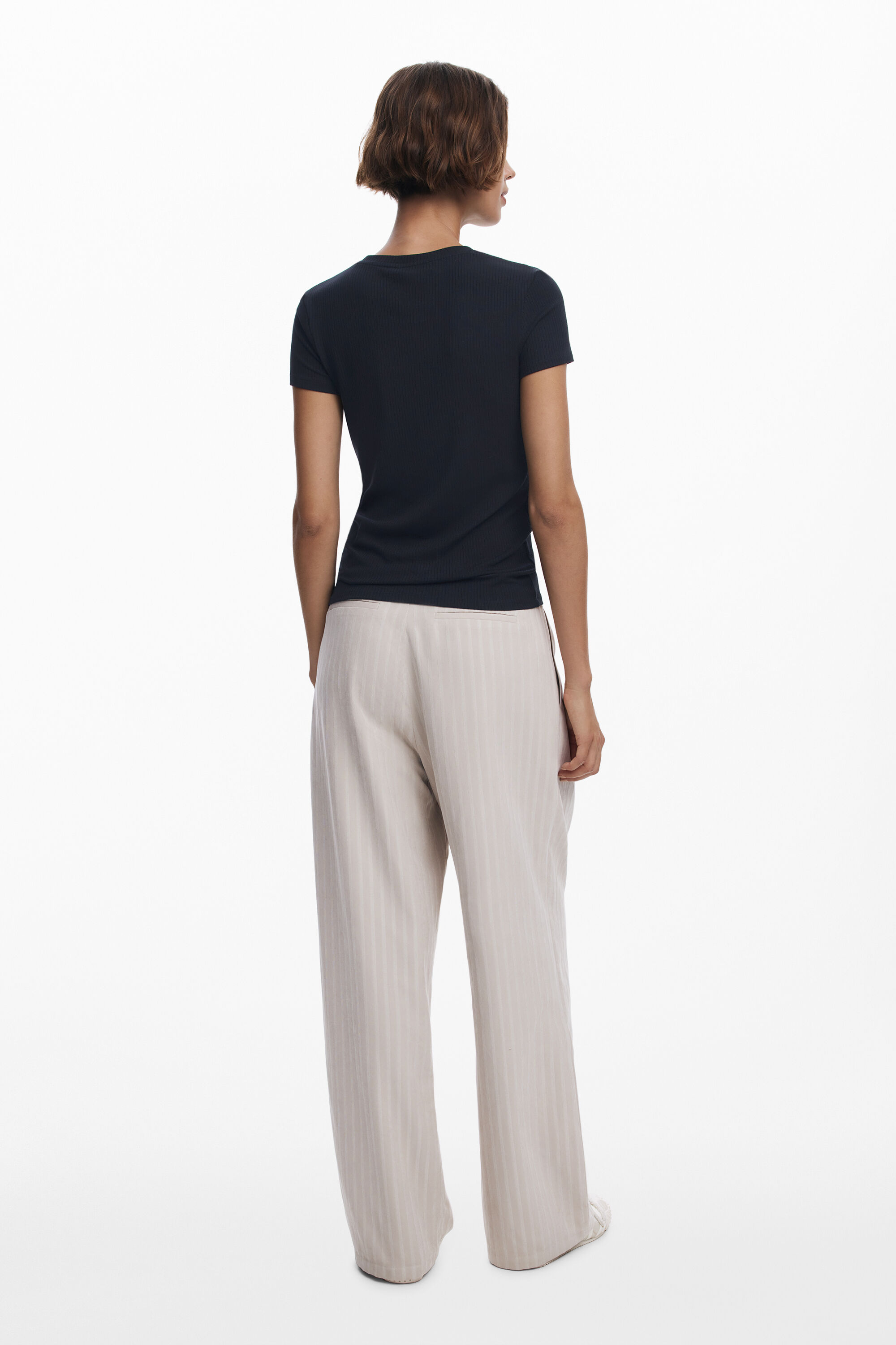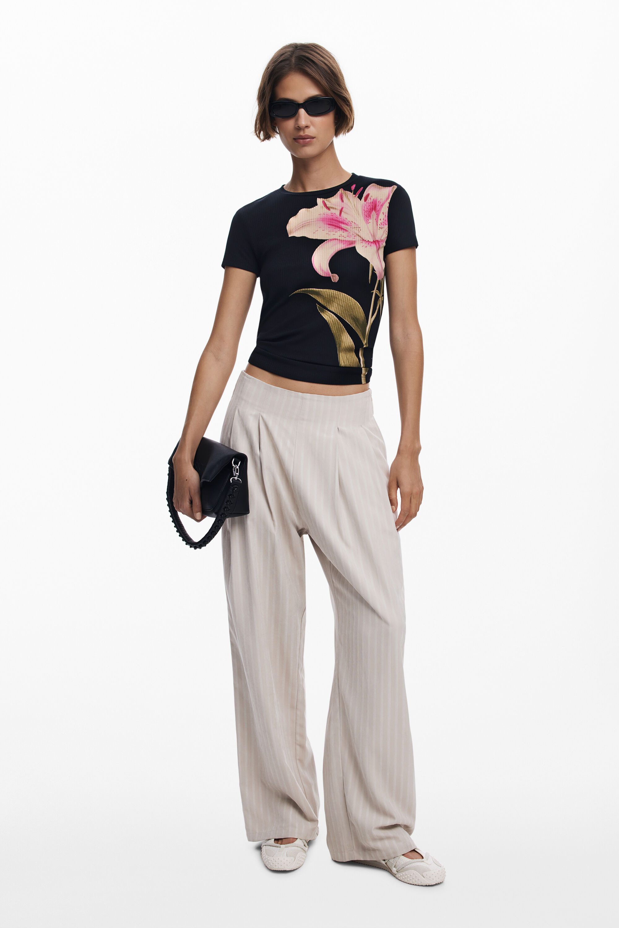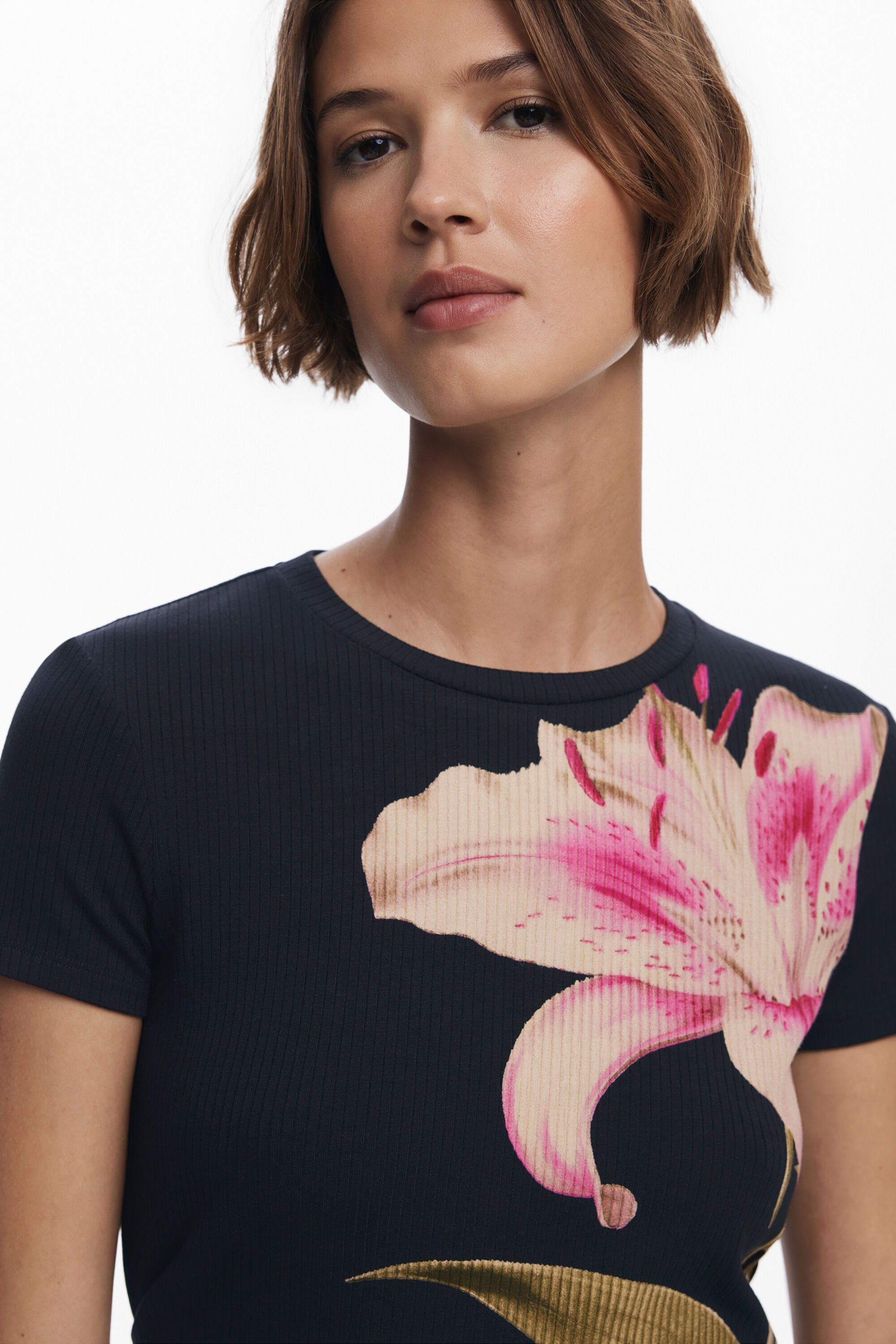 Maglietta aderente a costine, con maniche corte e collo rotondo, con stampa di una grande orchidea sulla parte frontale.Vestibilità: SlimTinta unita con stampa di grande orchideaCollo: rotondoManica: CortaTessuto a costeStampa sulla parte anterioreCollezione AW25Progettato a BarcellonaPoliammide riciclata